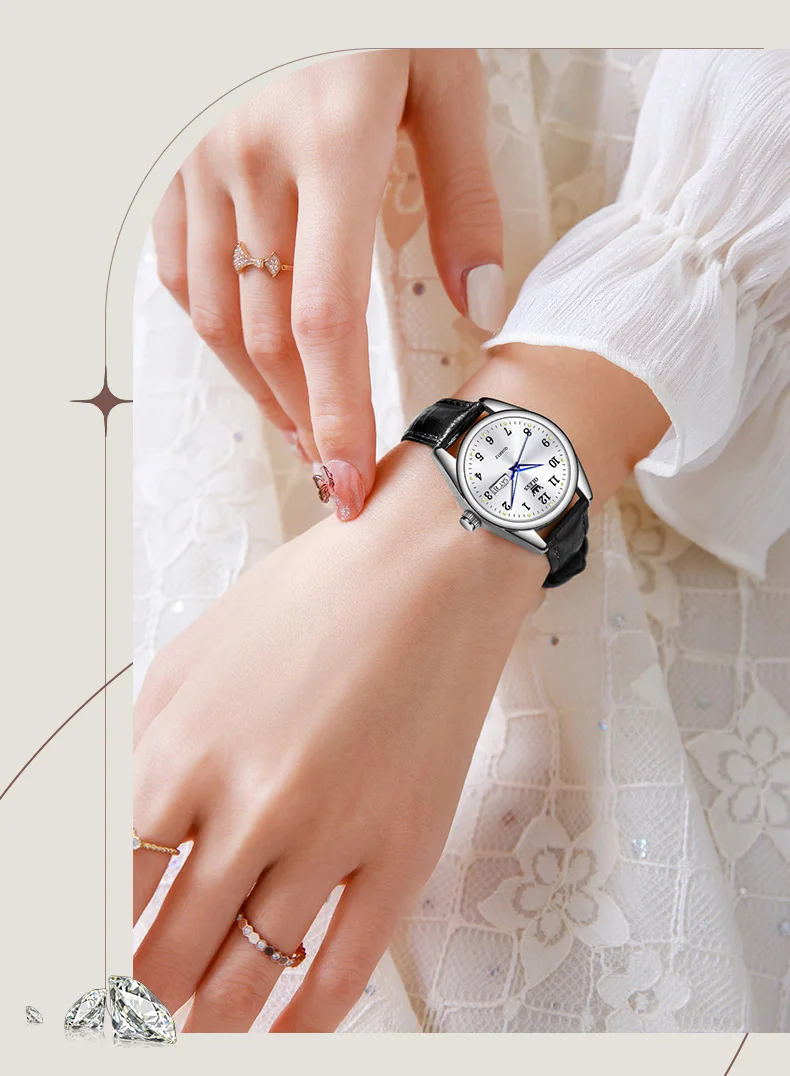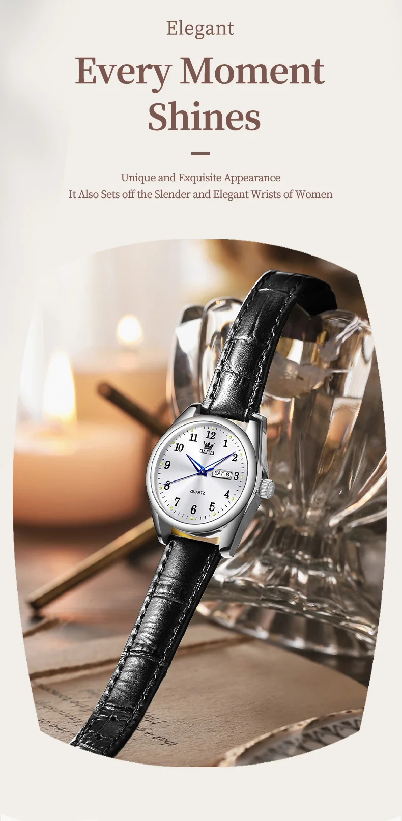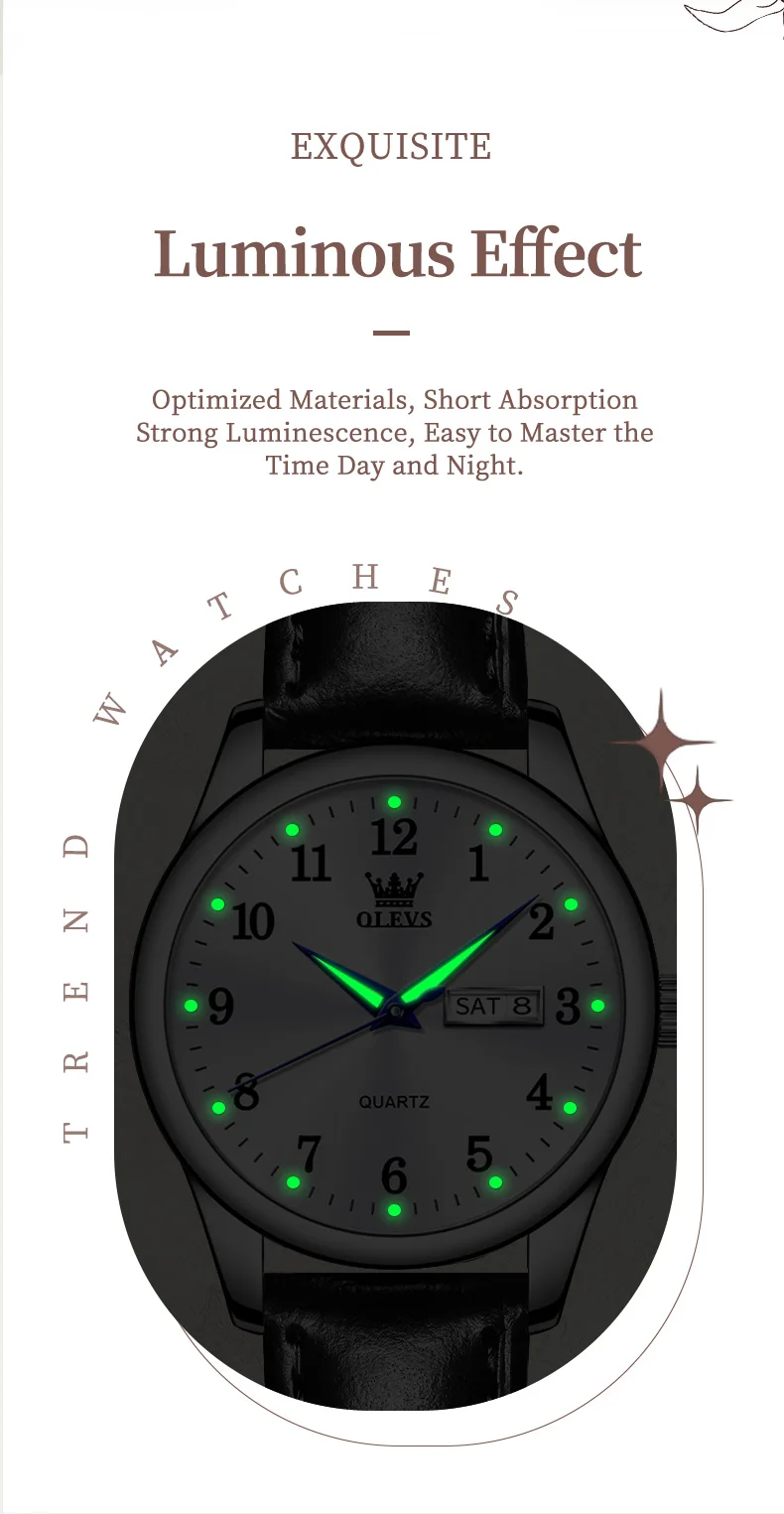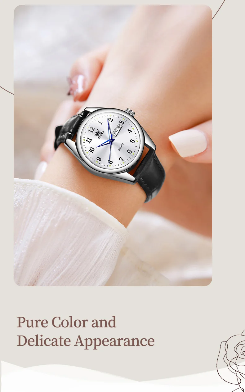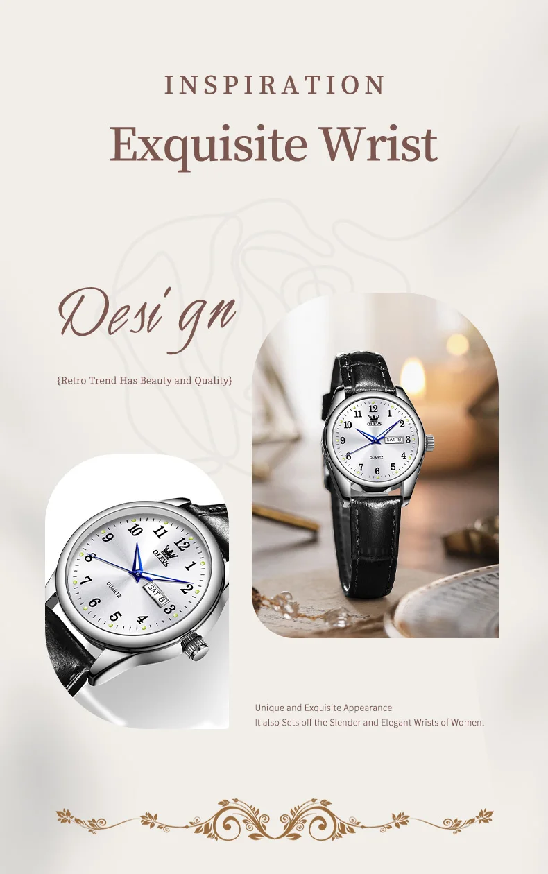 OLEVS Luxury Fashion Women's Quartz Watches Leather Strap Elegant Casual Waterproof Lady Wrist Watch Original Watches for Women
