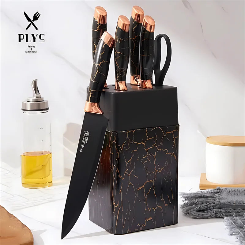 Unlock the full potential of your cooking with the 7PCS Kitchen Knife Set, featuring a stunning 7.5-inch professional chef knife designed for both novice and expert chefs. Crafted from high-quality stainless steel, this knife set is an essential addition to your kitchen, offering the perfect balance of performance, durability, and style.