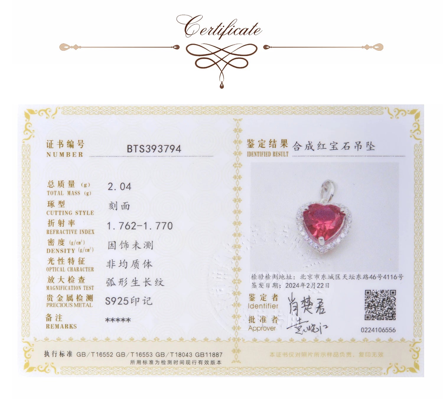 Certificate Type: BEIJING CUG GEM TESTING CENTER