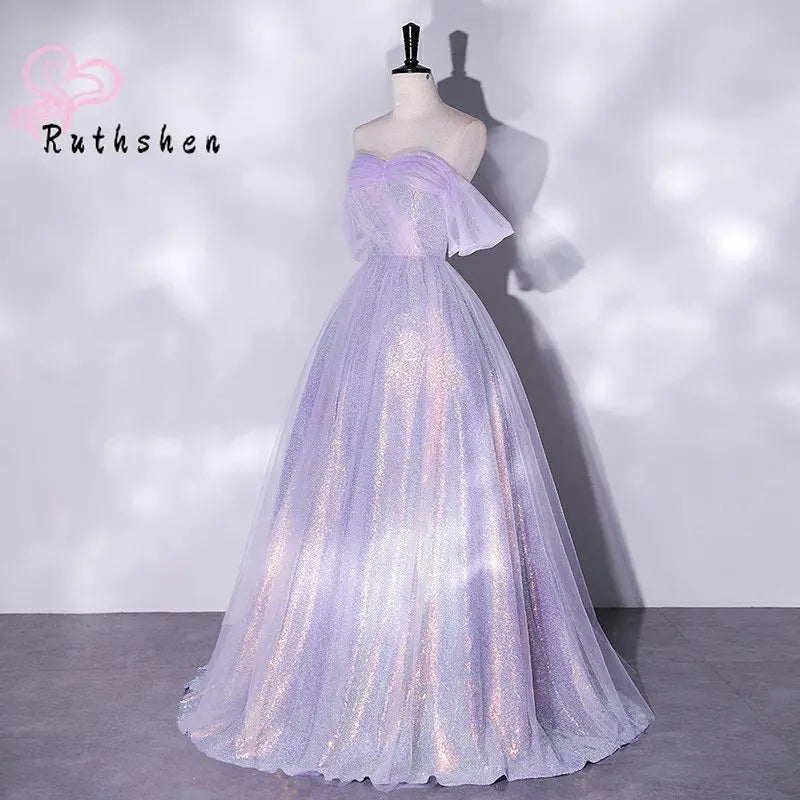 Ready to be the belle of the ball? Order your dream dress today and experience the magic of our Homecoming Dresses: Prom Dresses Off The Shoulder Light Purple Sequin Ball Gown. And don't forget to use promo code: we10 for an extra 10% off. Let's make your fairytale come true!