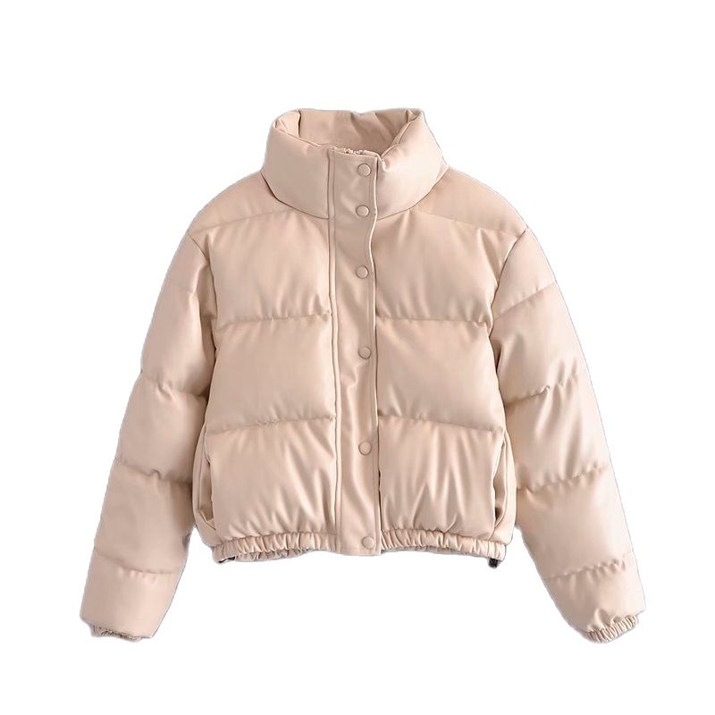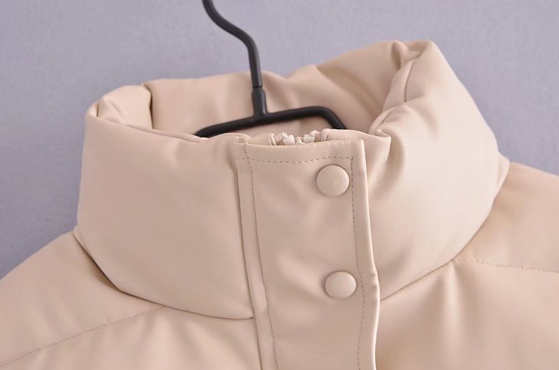 Women White Faux Leather Parka Winter Fashion Ladies High Waist Coats
