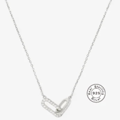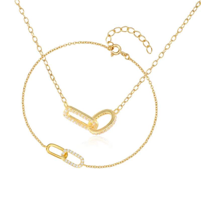 ROXI 925 Sterling Silver 17cm Double square crystal Bracelet For Women 40cm Clavicle Chain Necklace Wedding Pary bijoux femme