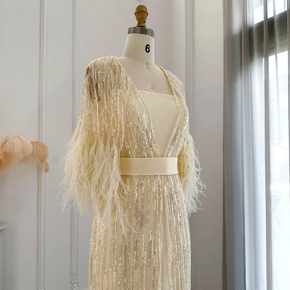 Homecoming Dresses: Light Yellow Luxury Feathers Evening Dresses for Women