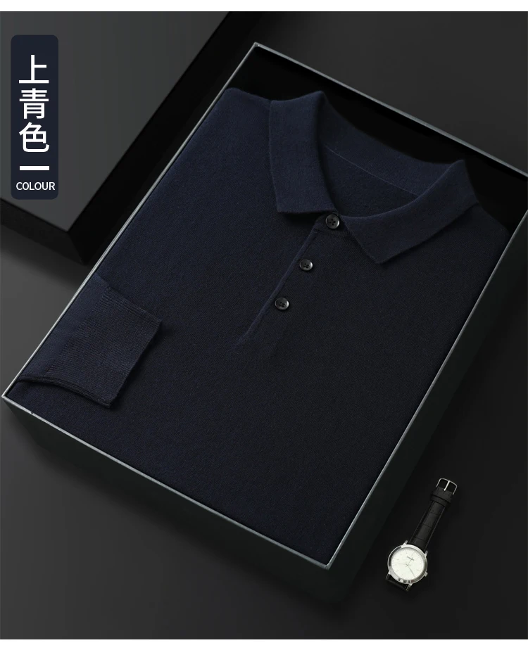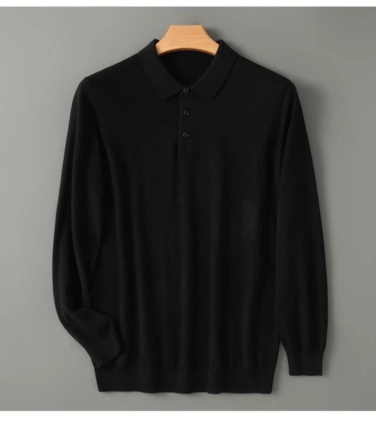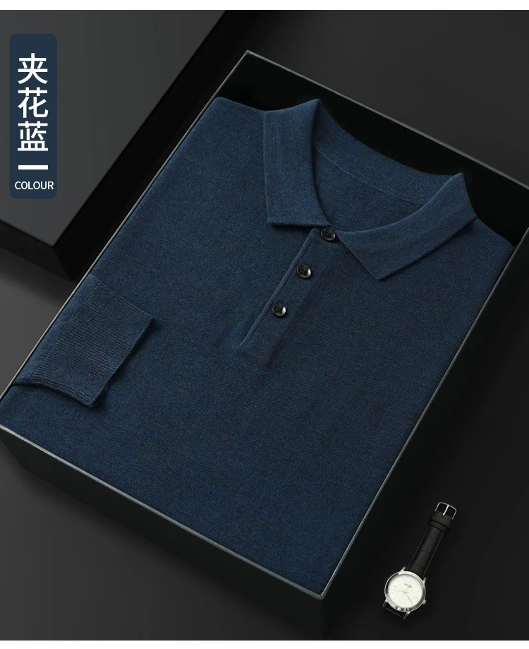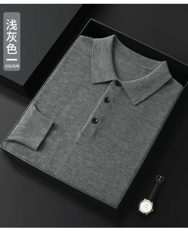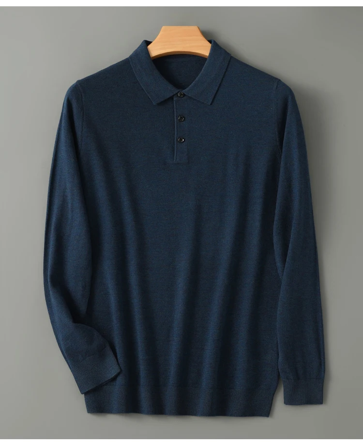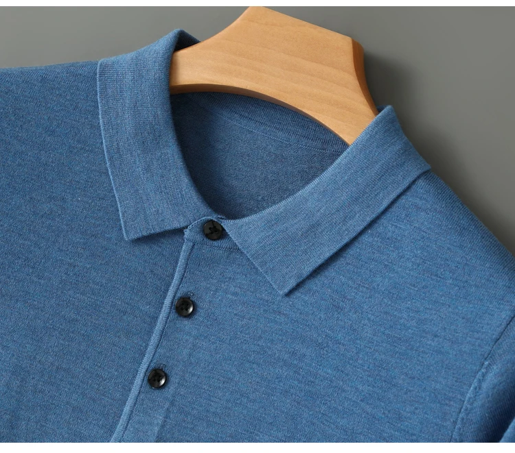 Spring Autumn Men Shirt Merino Worsted Wool Knitted Pullover Long Sleeve Polo-Collar Clothing Tops Smart Casual Thin Outerwears