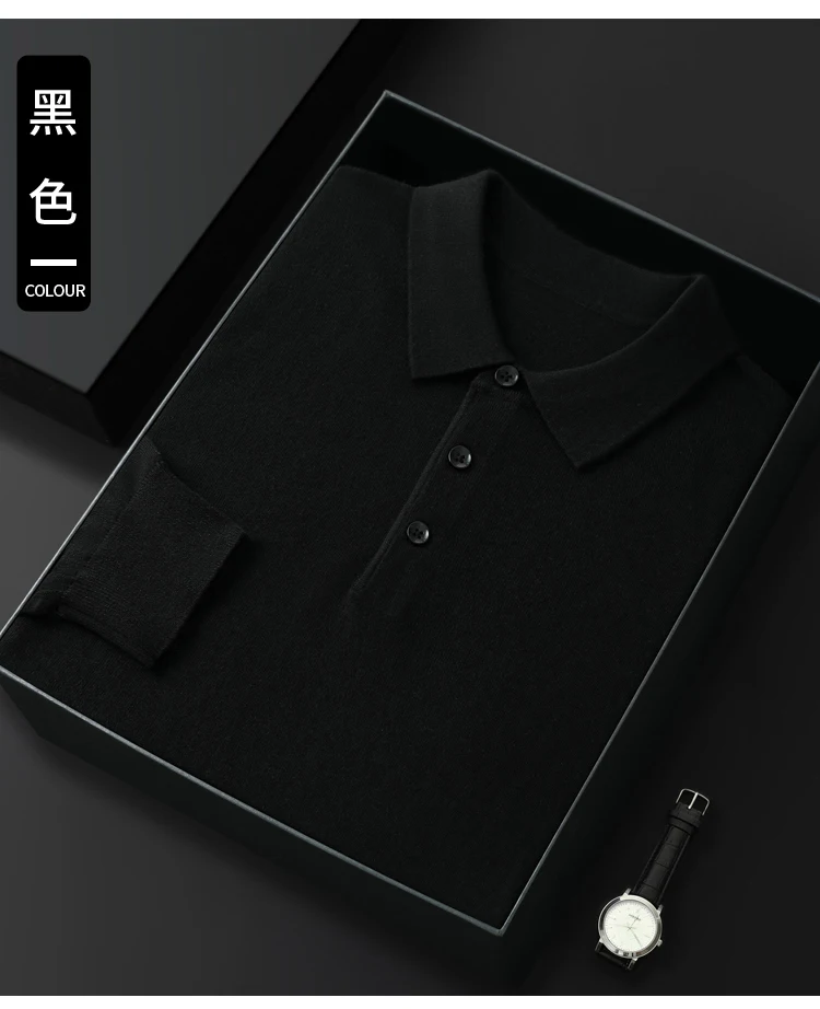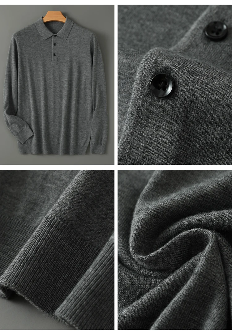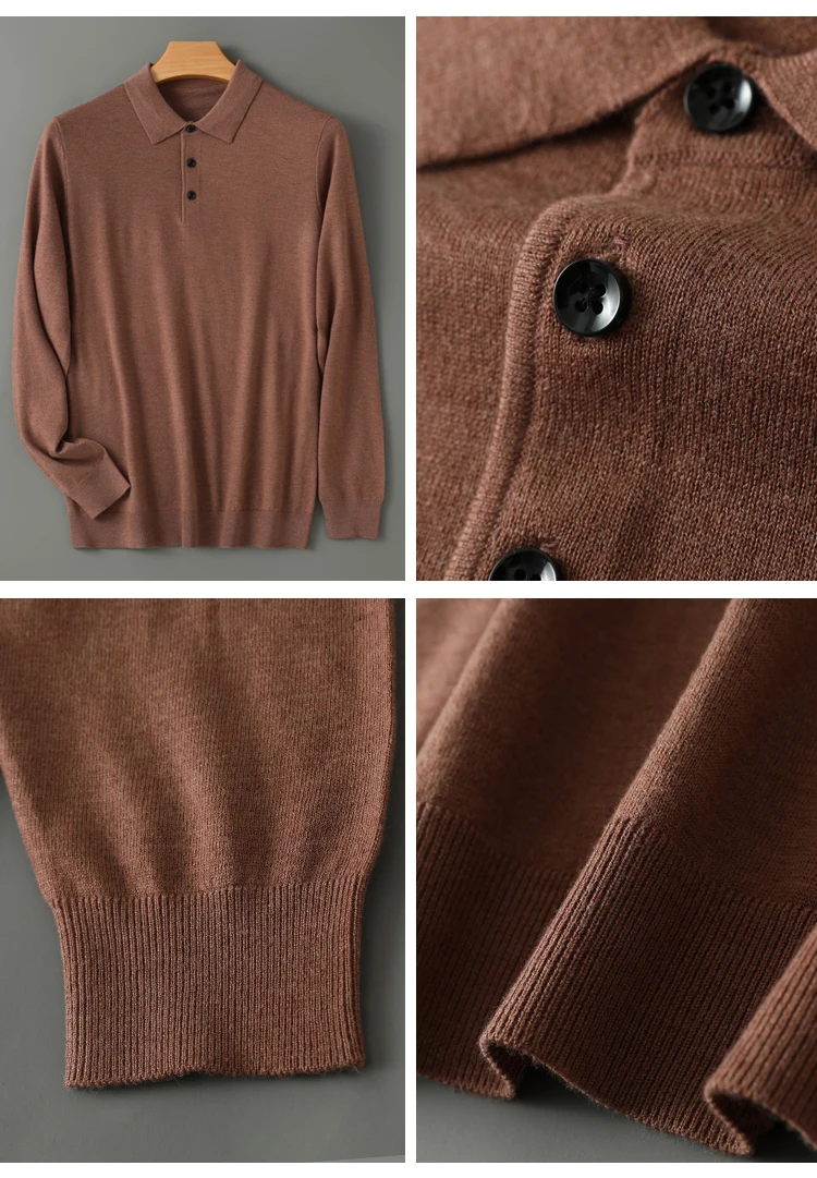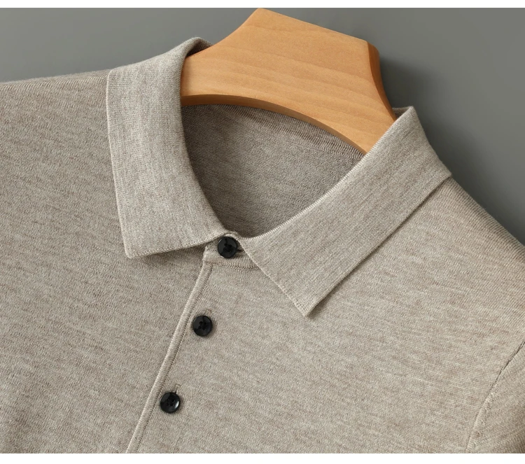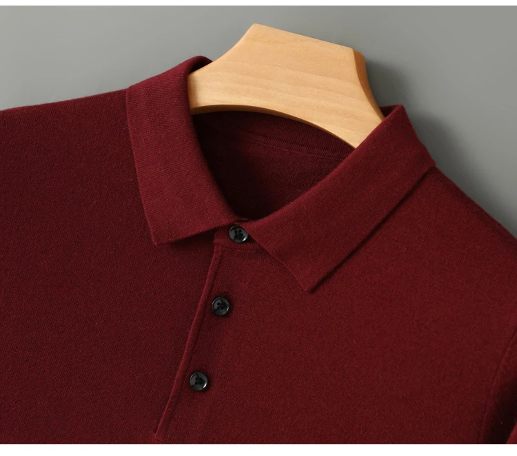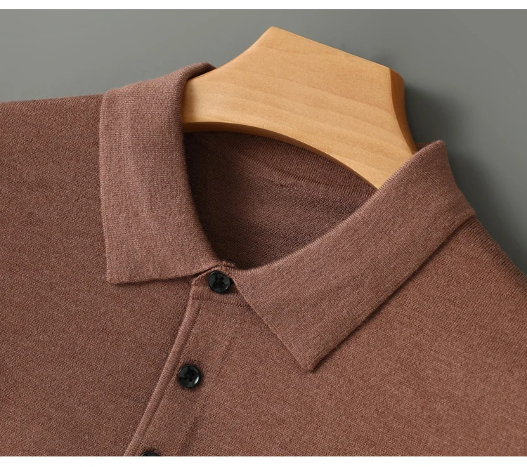 Spring Autumn Men Shirt Merino Worsted Wool Knitted Pullover Long Sleeve Polo-Collar Clothing Tops Smart Casual Thin Outerwears