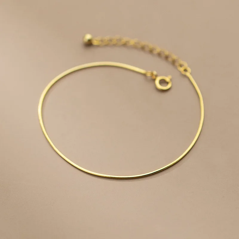 WANTME 925 Sterling Silver Minimalist Glossy Snake Bone Chain Charm Bracelet for Women Fashion Party Wedding Bangle Jewelry Gift