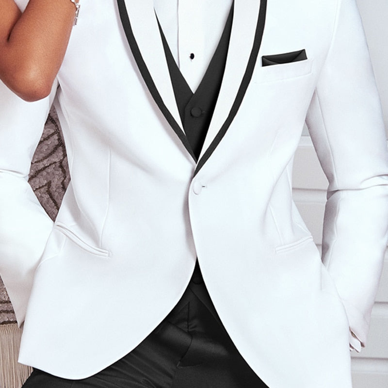 When it comes to timeless sophistication and modern elegance, our White and Black Wedding Tuxedo for Groom delivers the perfect balance. Crafted with precision and designed to make the ultimate statement, this 3 piece suit is an ideal choice for grooms, groomsmen, and formal events. Combining a sleek white blazer with classic black trousers and a tailored vest, this tuxedo is a standout ensemble for weddings, proms, and other special occasions. If you're on the hunt for wedding tuxedos or the best wedding suits for men, this slim-fit masterpiece is your go-to option for an unforgettable look.