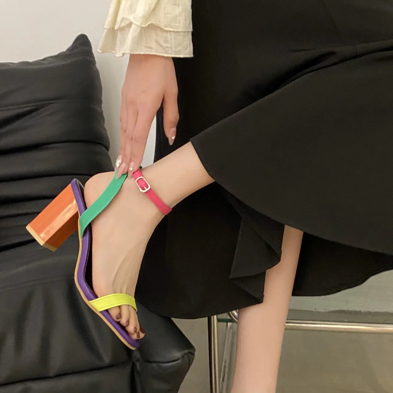 Elegant High Heels: Standing tall with high heels, these sandals offer a graceful lift that enhances your posture and style. Ideal for special events or everyday wear, they provide a striking contrast to flat black womens shoes or womens comfortable heels.