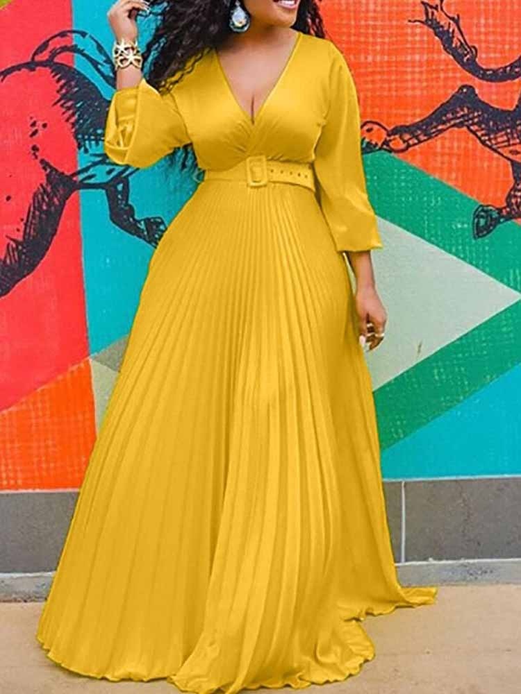 From ladies casual dresses to more formal attire, this pleated maxi dress effortlessly transitions from day to night. The long sleeve design provides a touch of sophistication while ensuring comfort throughout the event. The dress also comes in various shades, including green dress, yellow dresses, and white mini dress, to match your personal style.