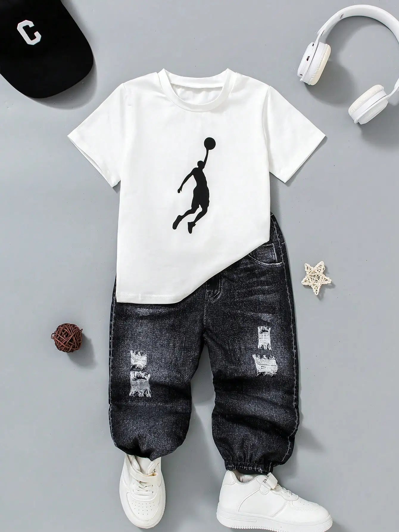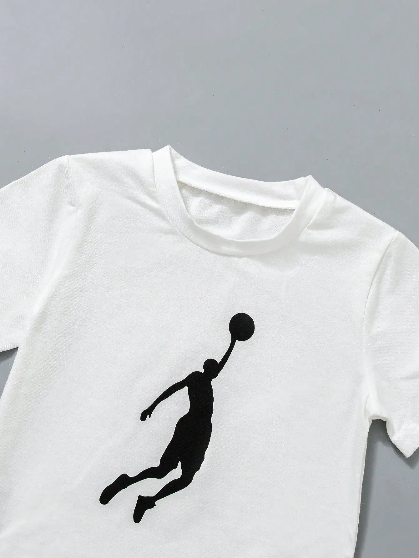Boys Basketball Graphic Knit Pants Set, Street-Casual Style. Urban Outfit for Ages4-7, Spring-Summer
