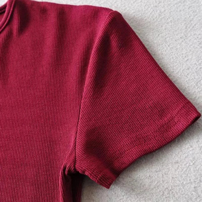 Casual Summer Woman Skinny Fit T-shirt Tight Short-Sleeve O-neck Tee Basic Solid Crop Tops T Shirt
