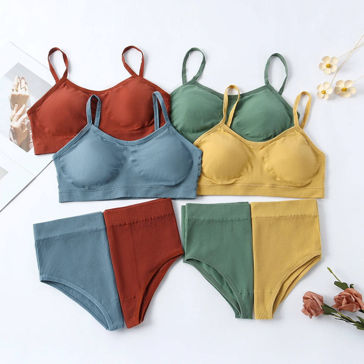 Women Underwear Seamless Bra Set High Waist Panties