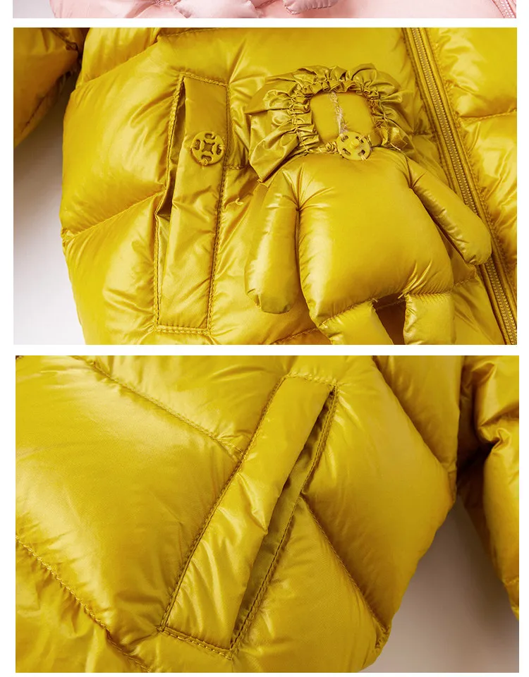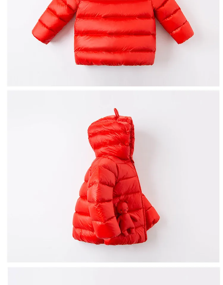 The down-filled insulation provides excellent warmth, making it ideal for even the coldest winter days. The hooded design adds an extra layer of protection against the elements, keeping your baby’s head and ears snug and shielded from the wind. The fun cartoon print brings a playful touch to the coat, making it a favorite for both kids and parents alike.