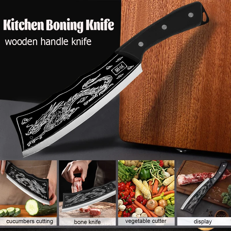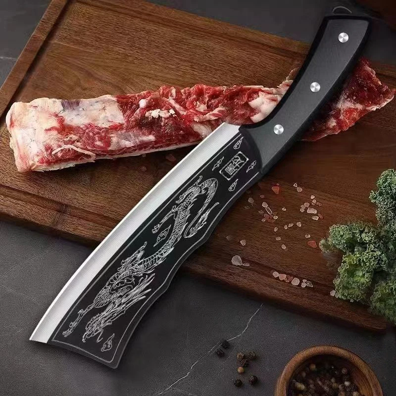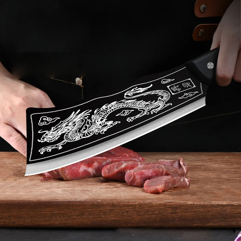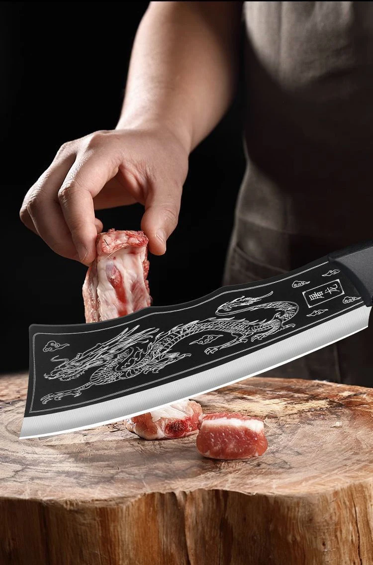 Introducing the Dragon Pattern Forged Bone Chopping Knife, a remarkable addition to your culinary arsenal. This stainless steel meat cleaver is designed for chefs who demand precision and power in their kitchen tools. With its unique dragon pattern, this knife not only performs exceptionally but also adds a touch of artistry to your kitchen knife set.