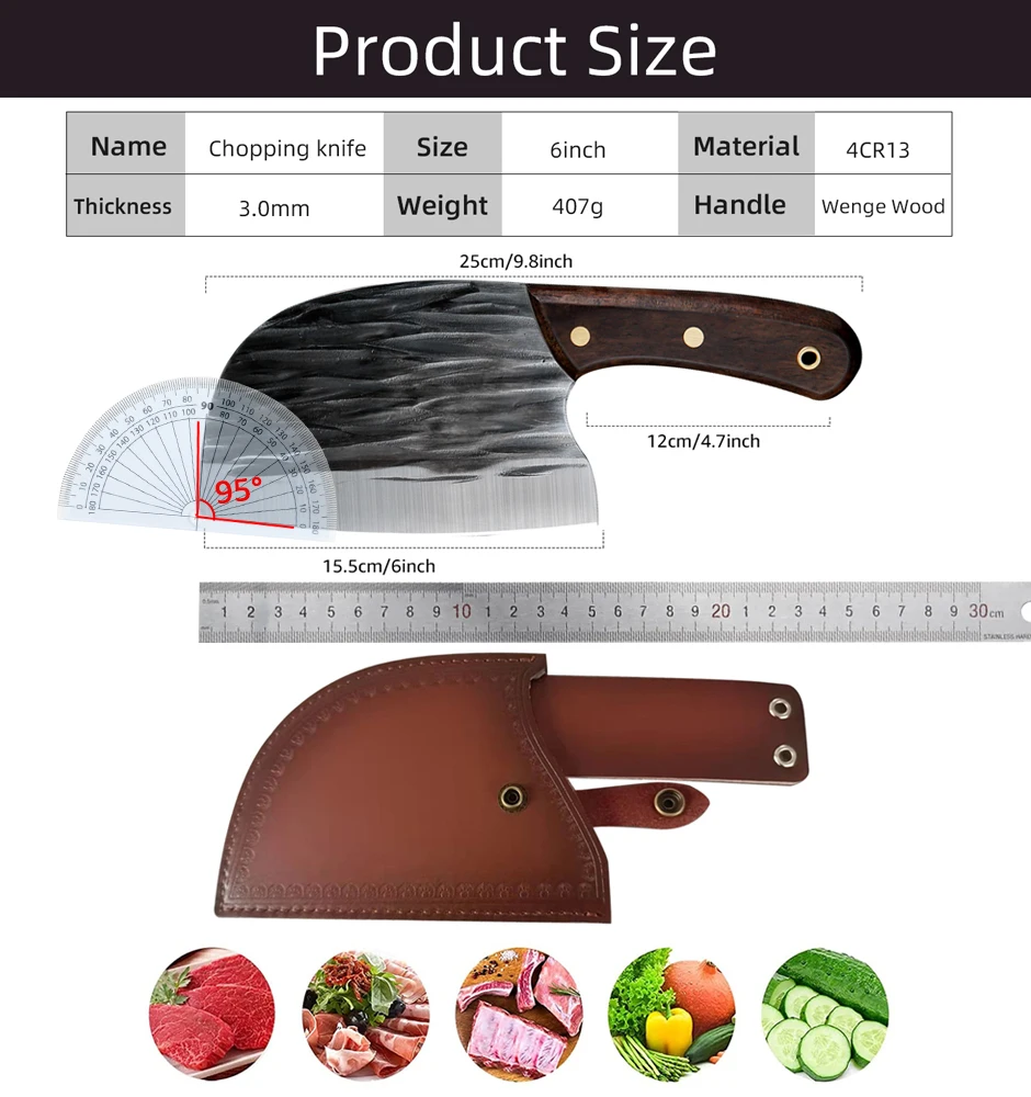 Incredible Versatility: Not limited to just meat, this cleaver can also tackle vegetables and other foods, making it a versatile addition to your cooking arsenal.