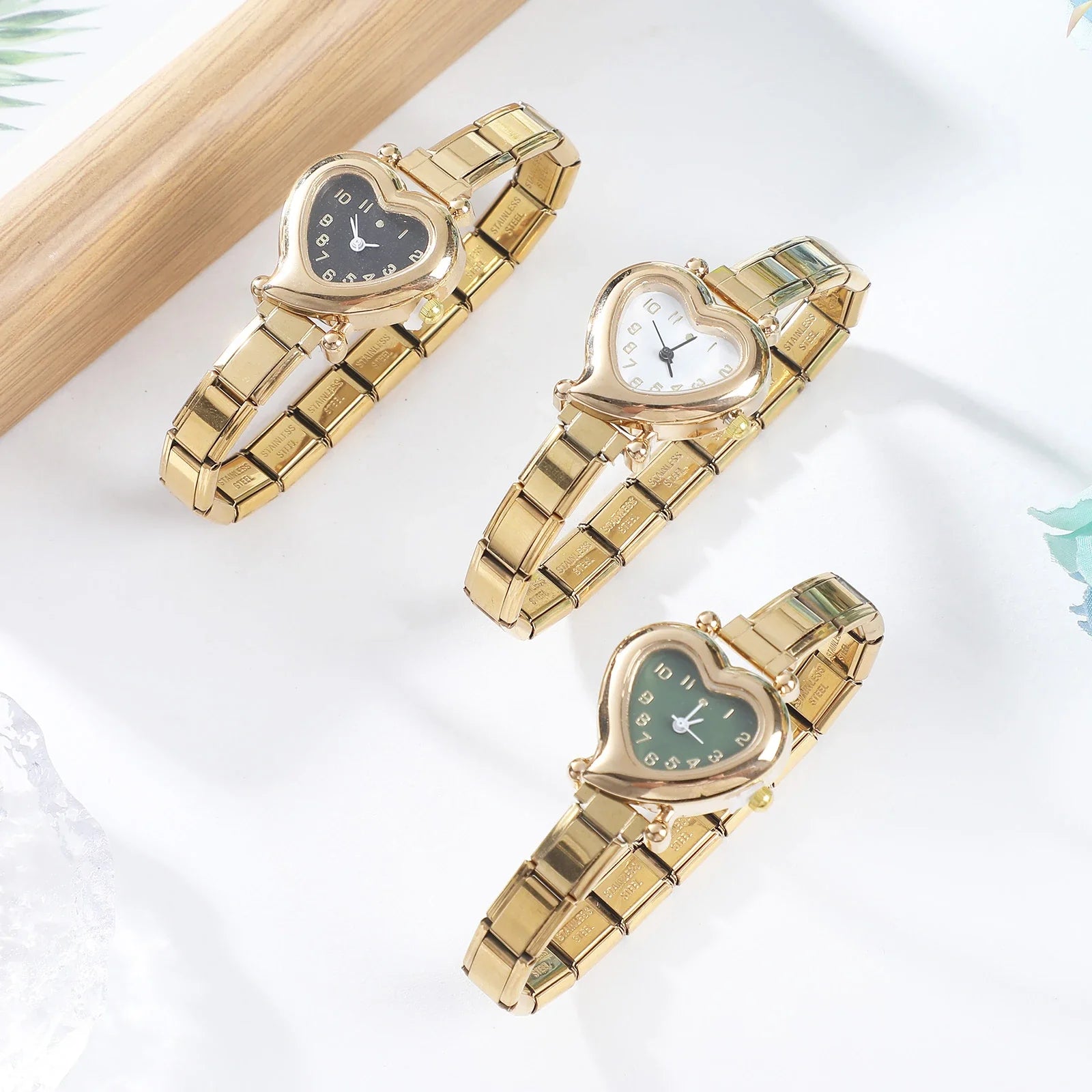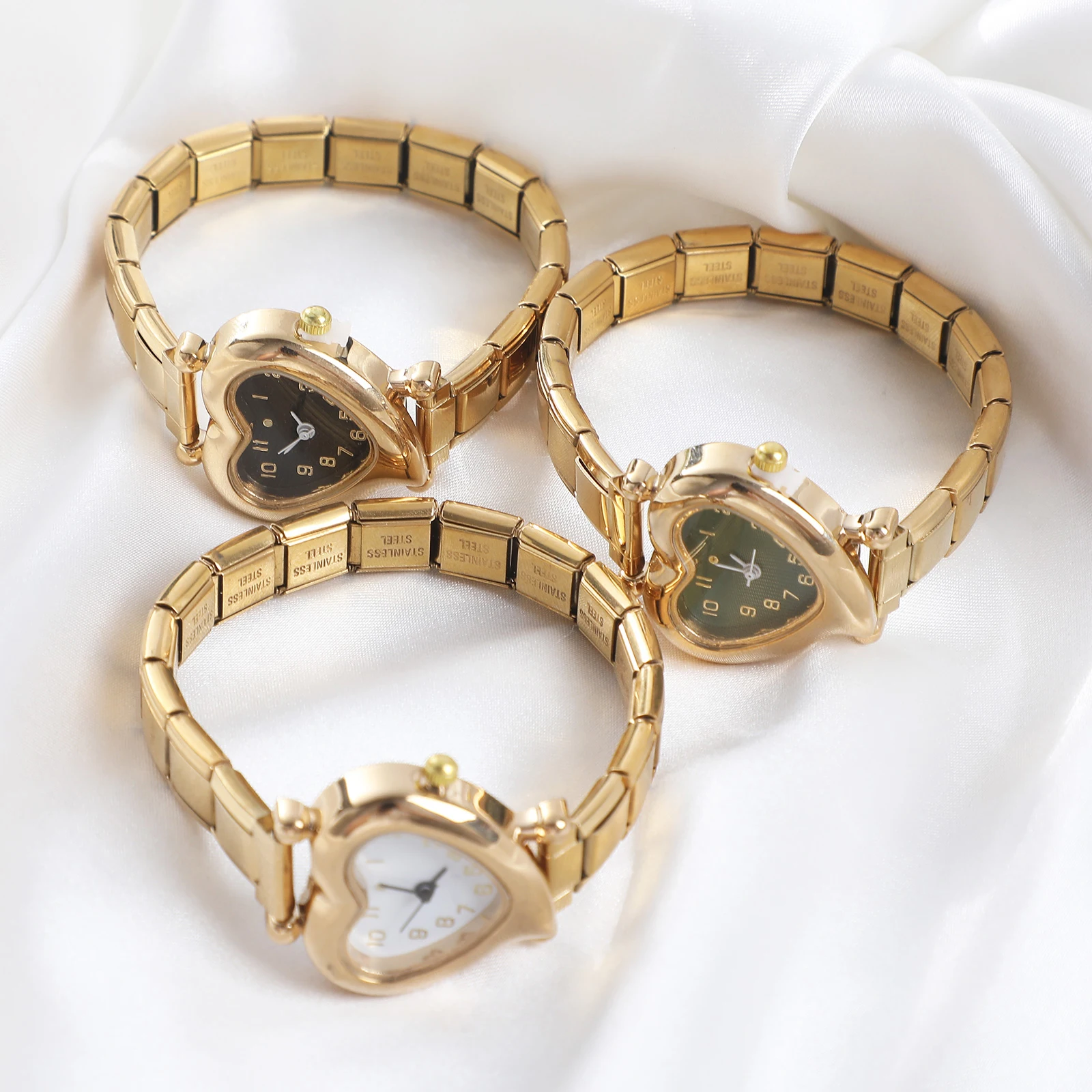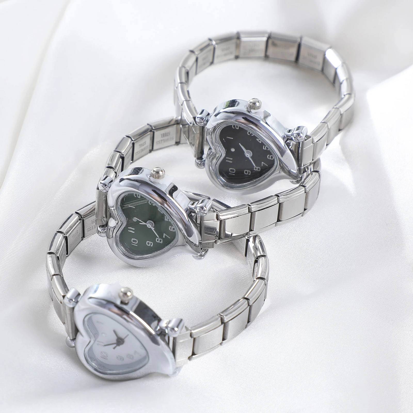 High Quality Fashion DIY 9MM Width Italian Elastic Charm Stainless Heart Shape Watch Bracelet Bangle for Friend Birthday Jewelry