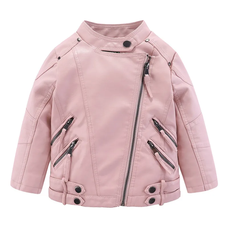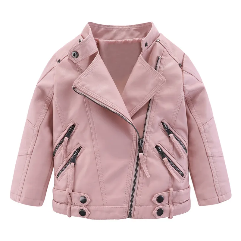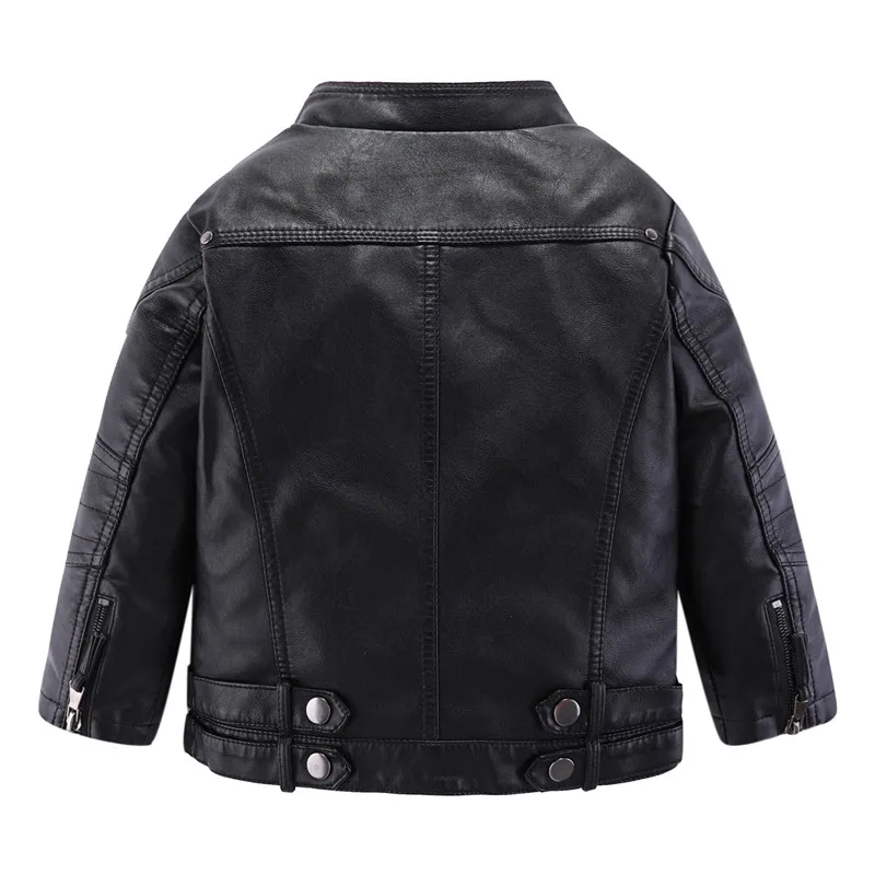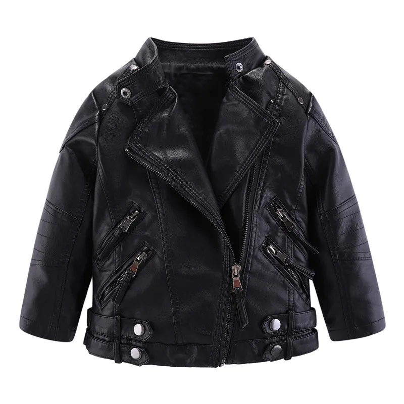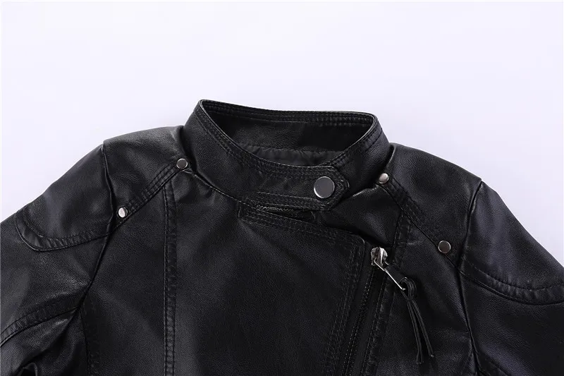 Mudkingdom Kids PU Leather Jacket Loose Diagonal Zipper Turn-Down Collar Tops Boys Girls Fashion High Quality Spring Clothes