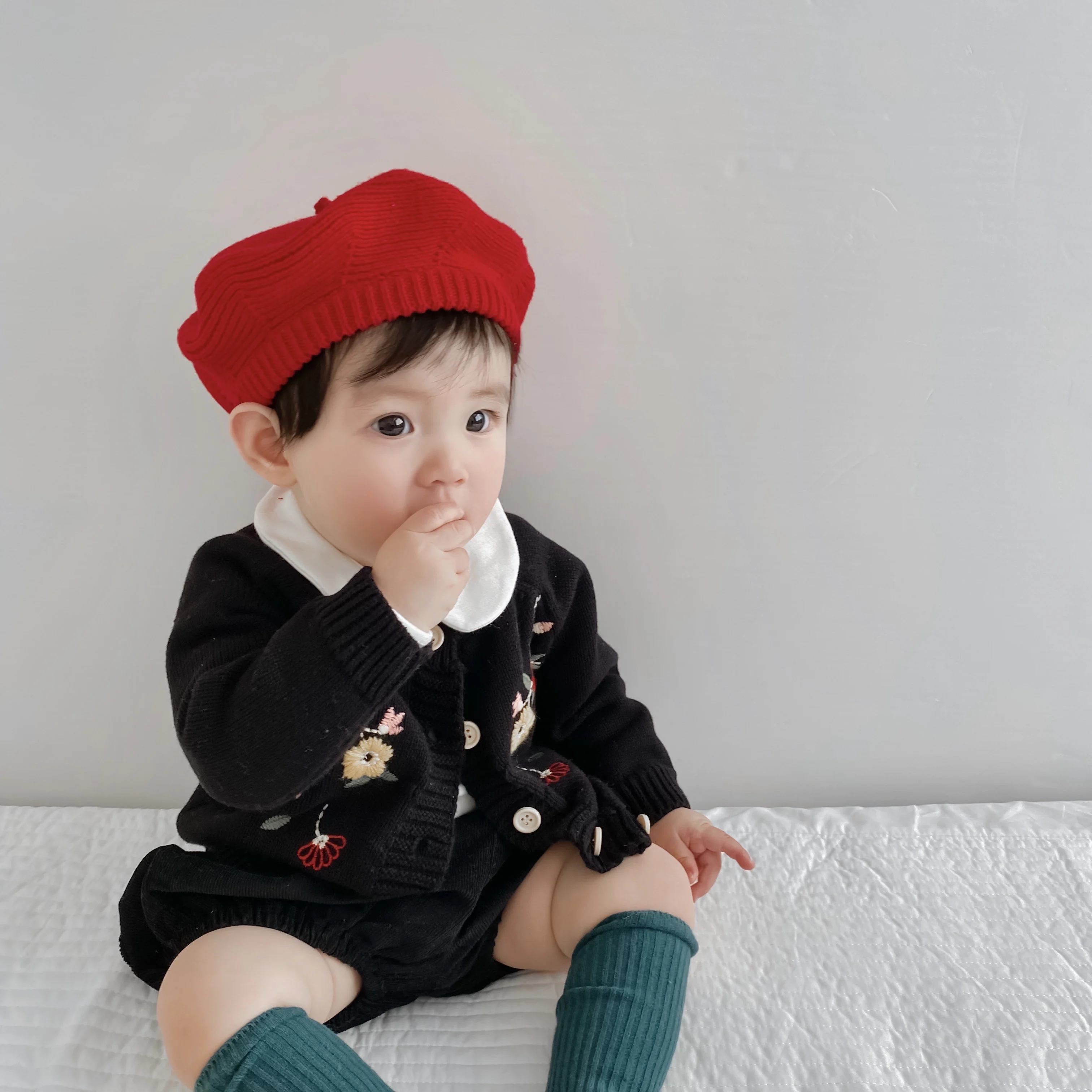 clothing baby girl children flower embroidered cotton yarn knitted sweater long