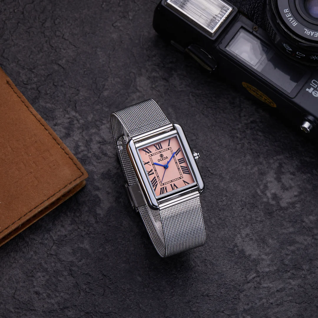 OGEDA Waterproof Couple Watches Casual Fashion Quartz Stainless Steel Leather Strap Square Dial Men's And Women's Lover Watch