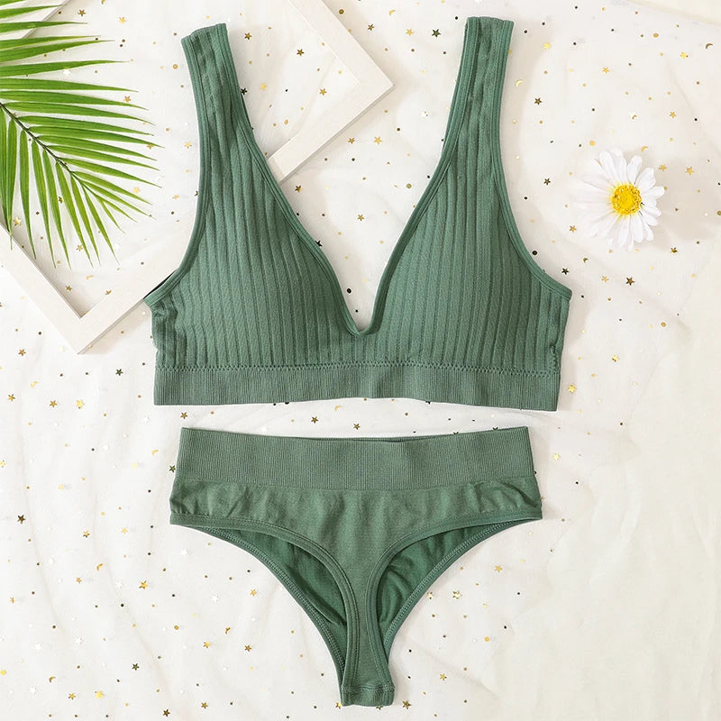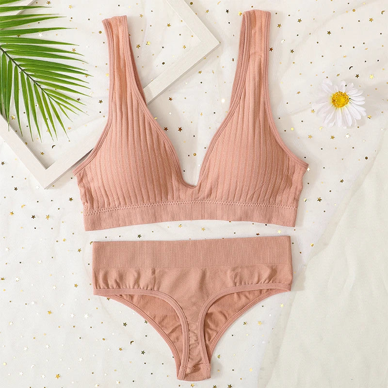 Introducing the ultimate in comfort and support: our Seamless Underwear Set Women Sport Lingerie Set Wireless Deep V Bra. Designed to meet the needs of modern women who desire both style and function, this versatile lingerie set offers the perfect combination of softness, support, and freedom. Whether you're lounging, working out, or heading out for a night on the town, this underwear set ensures you feel confident and comfortable all day long.