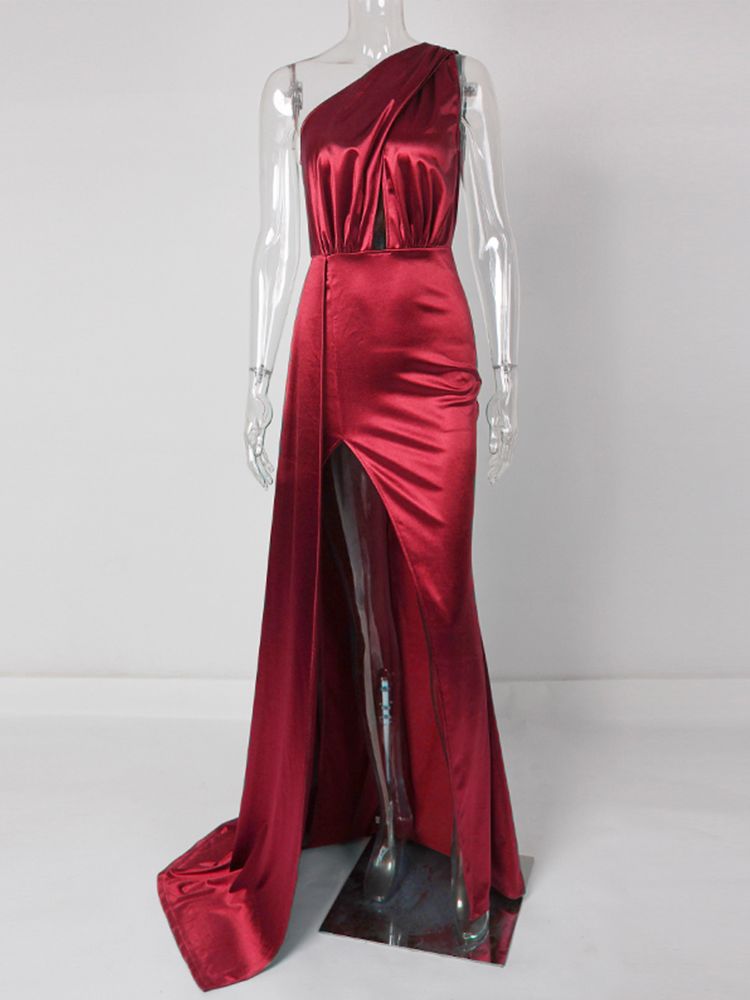 Don't miss out on our evening dress sale! We're offering fantastic discounts on this stunning piece, making it an affordable option for various occasions. Whether you're looking for long formal dresses for women, cheap prom dresses, or discount prom dresses, you'll find incredible deals on our Night Dress Burgundy Stretch Satin One Shoulder.
