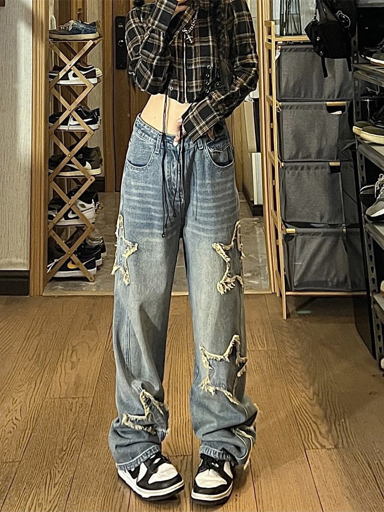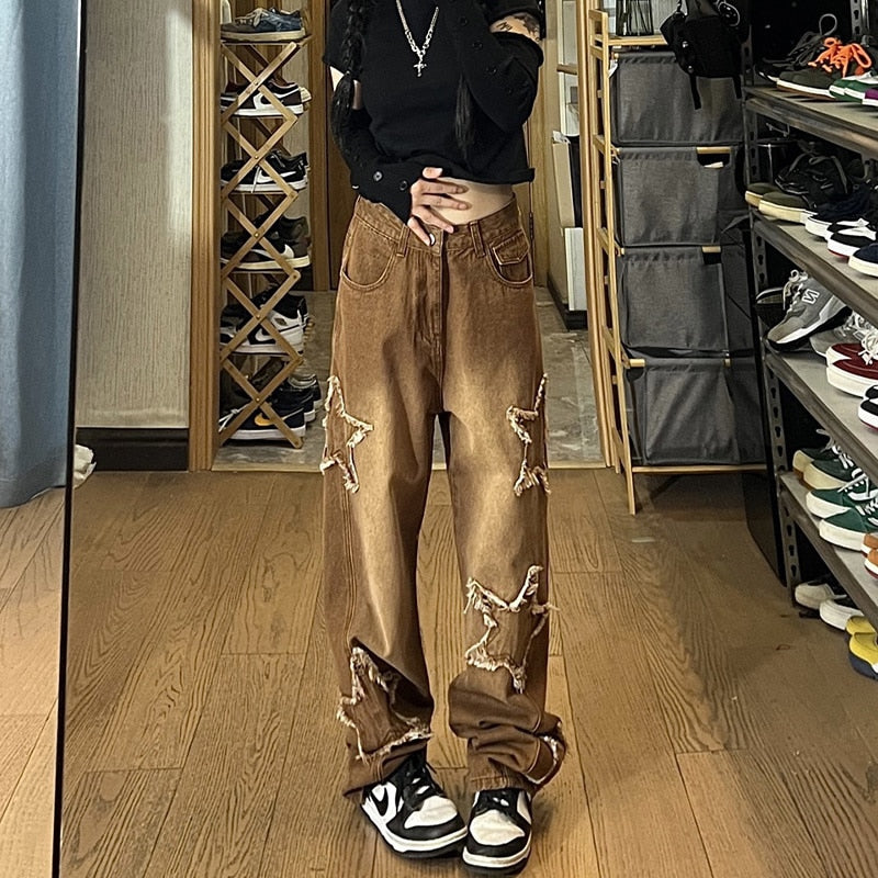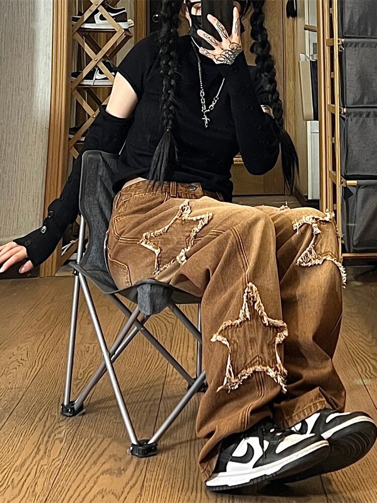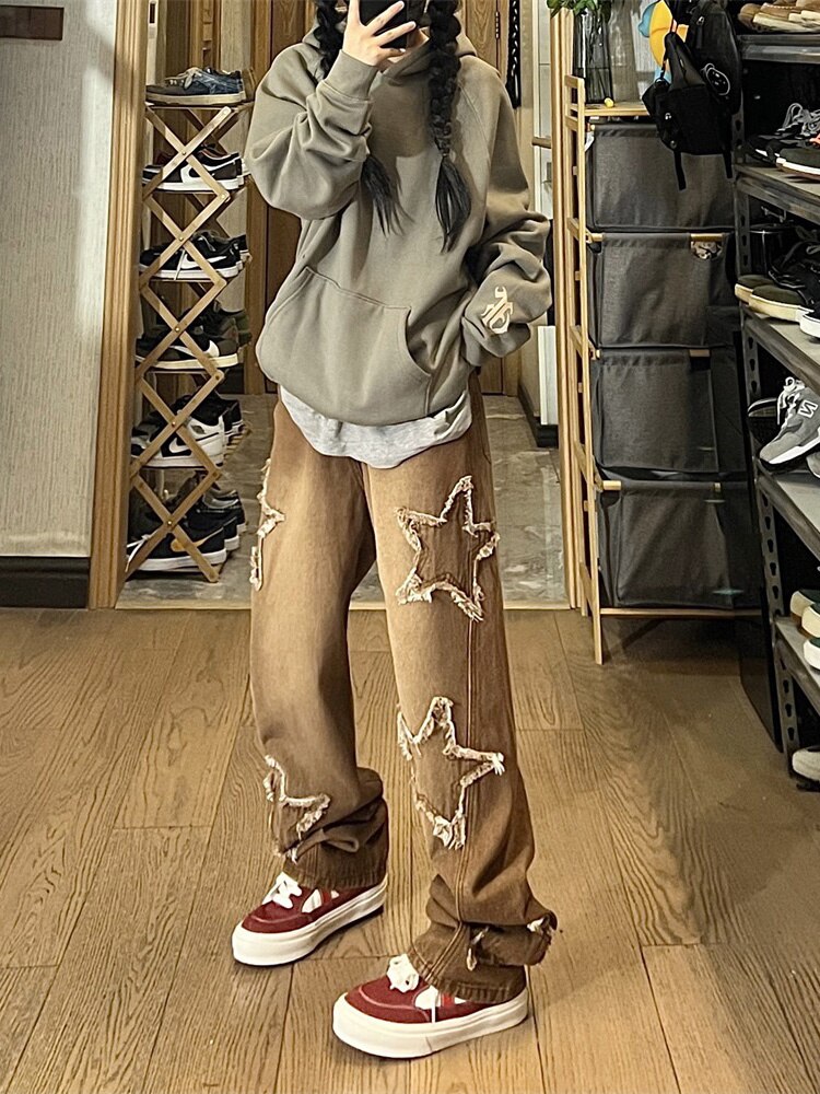 American Brown Jeans Men - Washed Gradual Gradient Five-Pointed Star