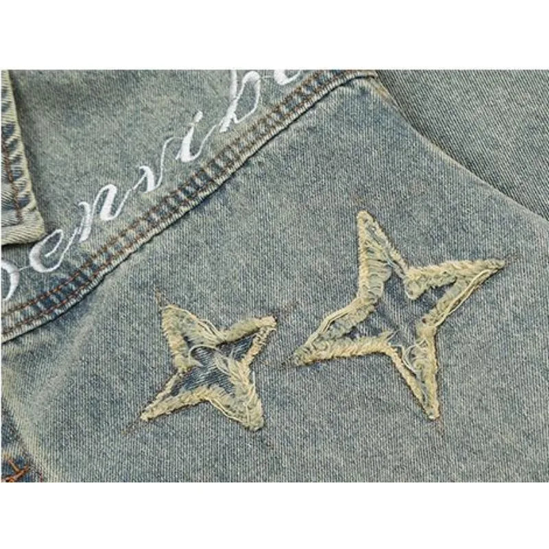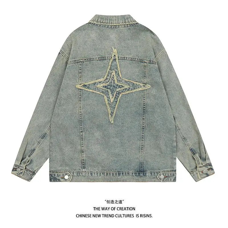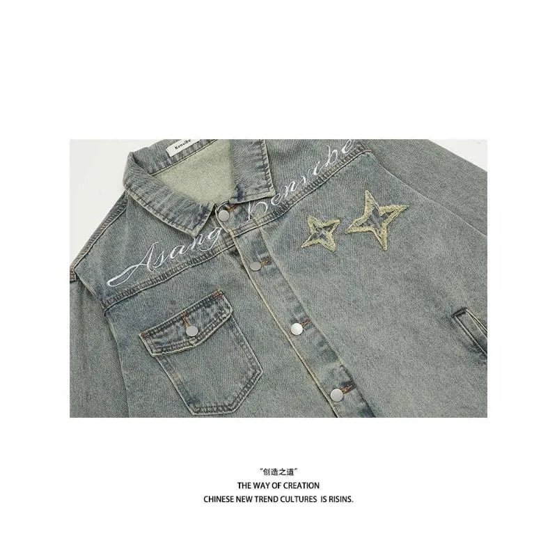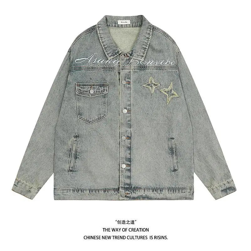 Make a bold statement with our American High Street Letter XINGX Embroidery Denim Coat. This standout jacket combines high street fashion with unique design elements, offering a contemporary twist on classic denim.