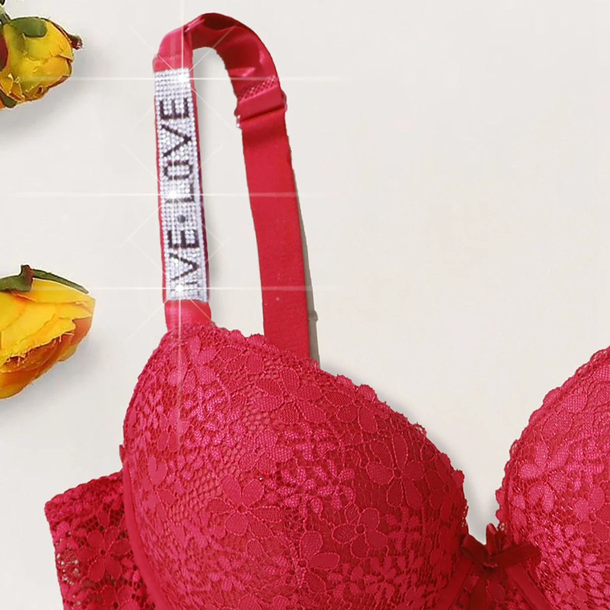 Unveil the ultimate blend of comfort, style, and elegance with our Beauwear Shine Letter Straps Push Up Bra Comfy Breathable Floral Lace Everyday Bra. Crafted to perfection, this bra is designed to provide the ideal combination of support and aesthetics, making it an essential addition to your lingerie collection.
