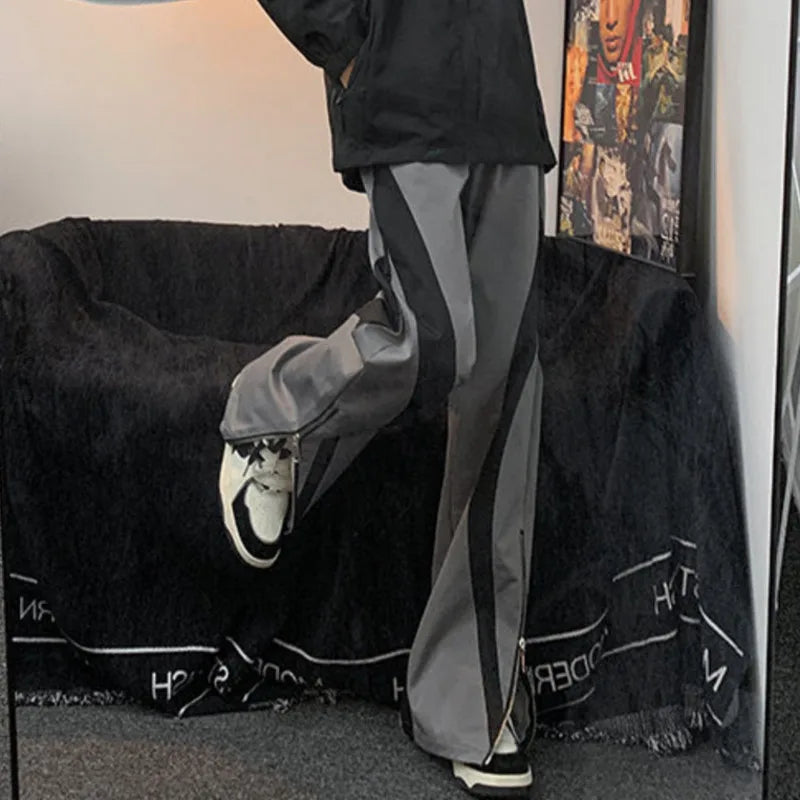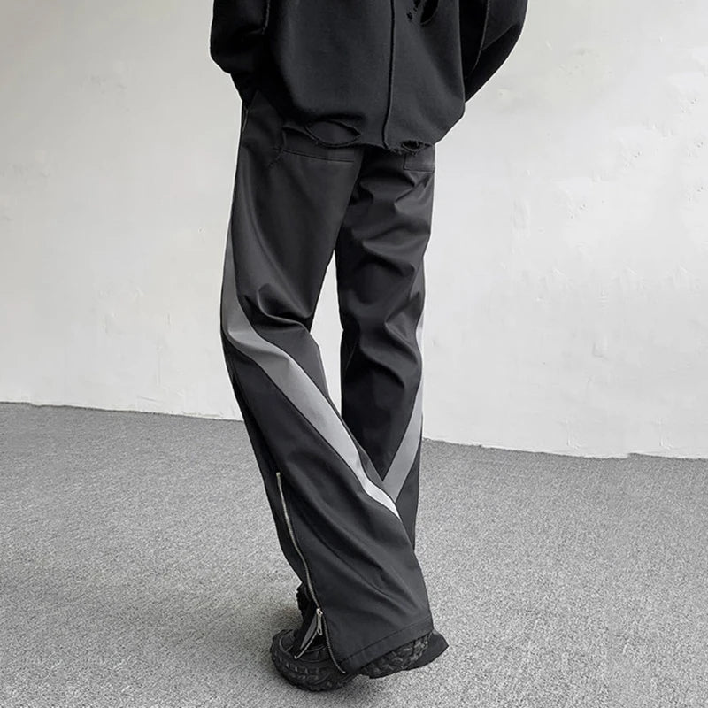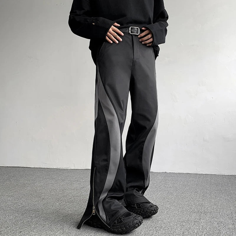 Men’s Suit Pants Spliced Side Zippers Boot-cut Bottom Straight Leg Contrast Color