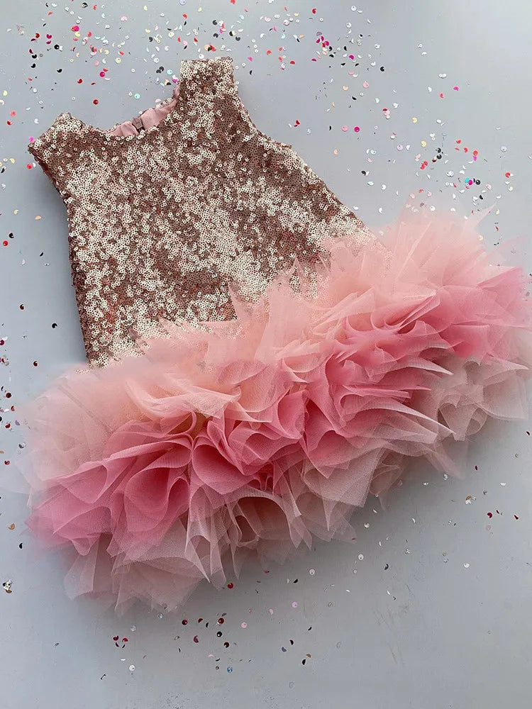 Let your child sparkle and shine with our Kids Girl Sequined Dress. This stunning sleeveless dress features a beautiful patchwork design and a tutu skirt, making it perfect for any special occasion. Whether it’s a birthday party, a wedding, or a family gathering, this dress will make your little one the center of attention.