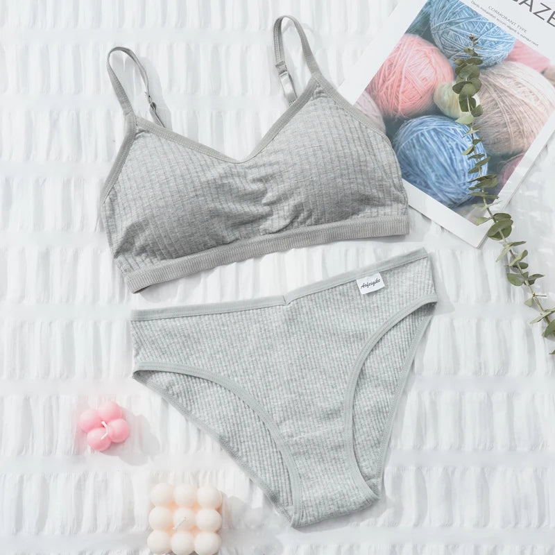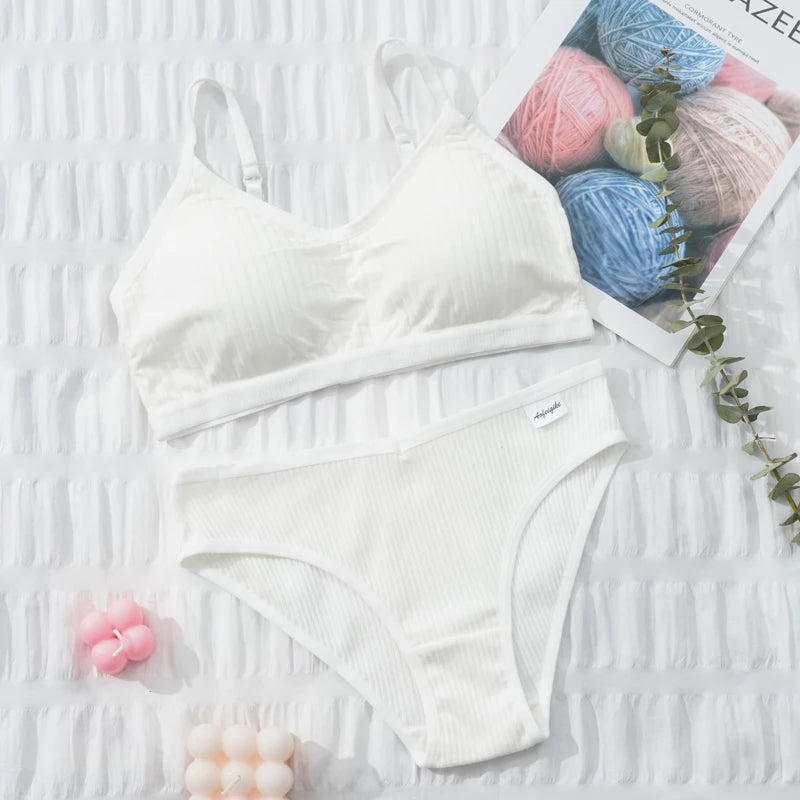 Women Top Panties Set Cotton Tops Low Waist Briefs Underwear Set Comfortable Soft