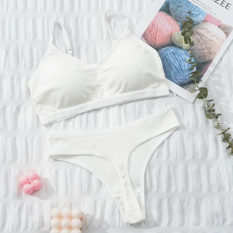 Crafted from soft, breathable cotton, the set includes a low waist briefs underwear set and a cotton top that ensures a snug and supportive fit throughout the day. The cotton fabric offers a luxurious feel against your skin, making it the ideal choice for all-day wear. It's not just about comfort though; this intimate set is designed to give you the confidence you deserve, with a modern cut that complements any body shape.
