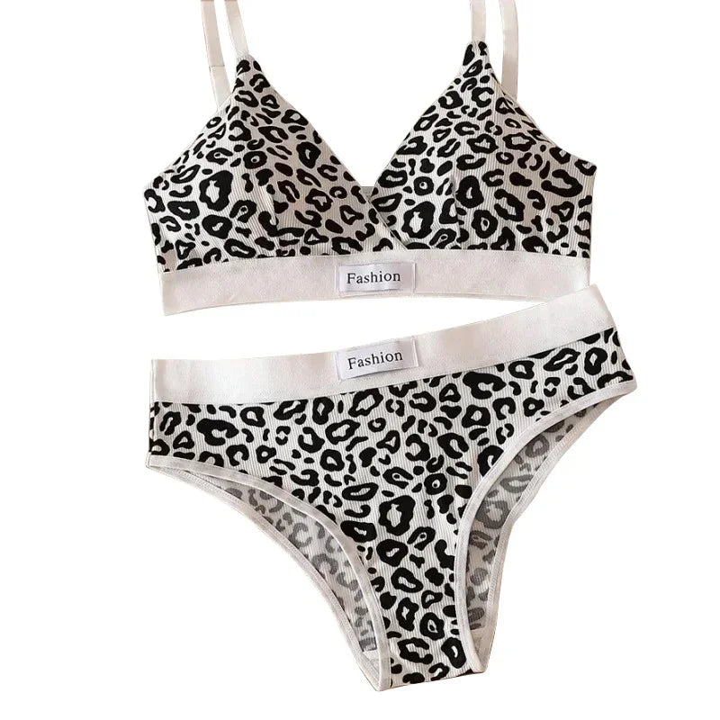 Summer New Women's Leopard Print Traceless and Steel Rim Bra Adjustable Shoulder Strap Back Women's Underwear Set