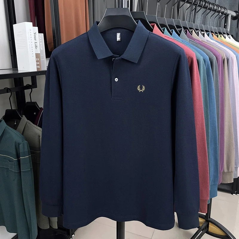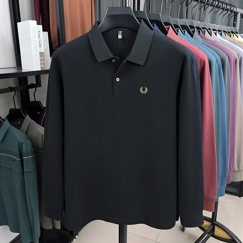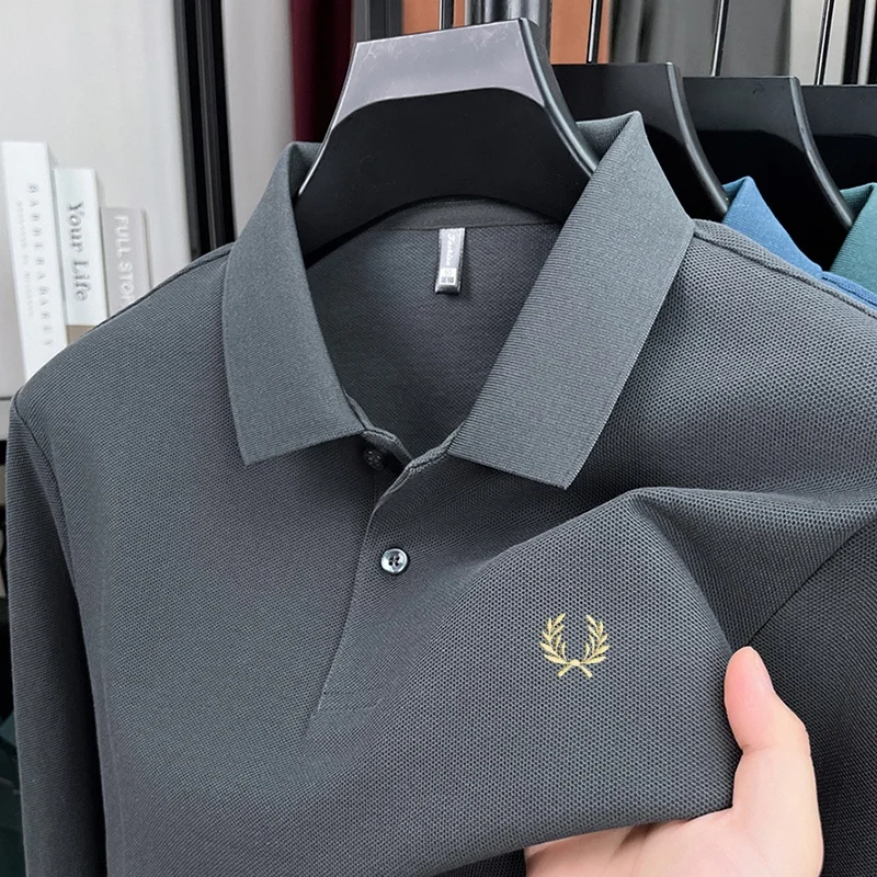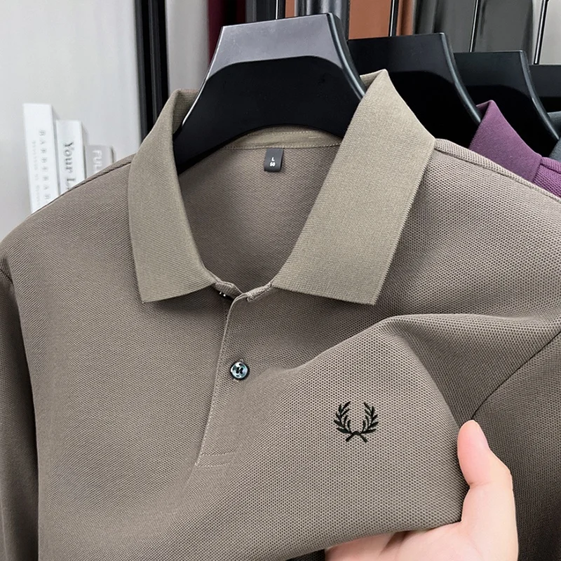 100% pure cotton high-end brand men's long sleeved polo shirt autumn fashion hot selling wheat embroidery golf business T-shirt