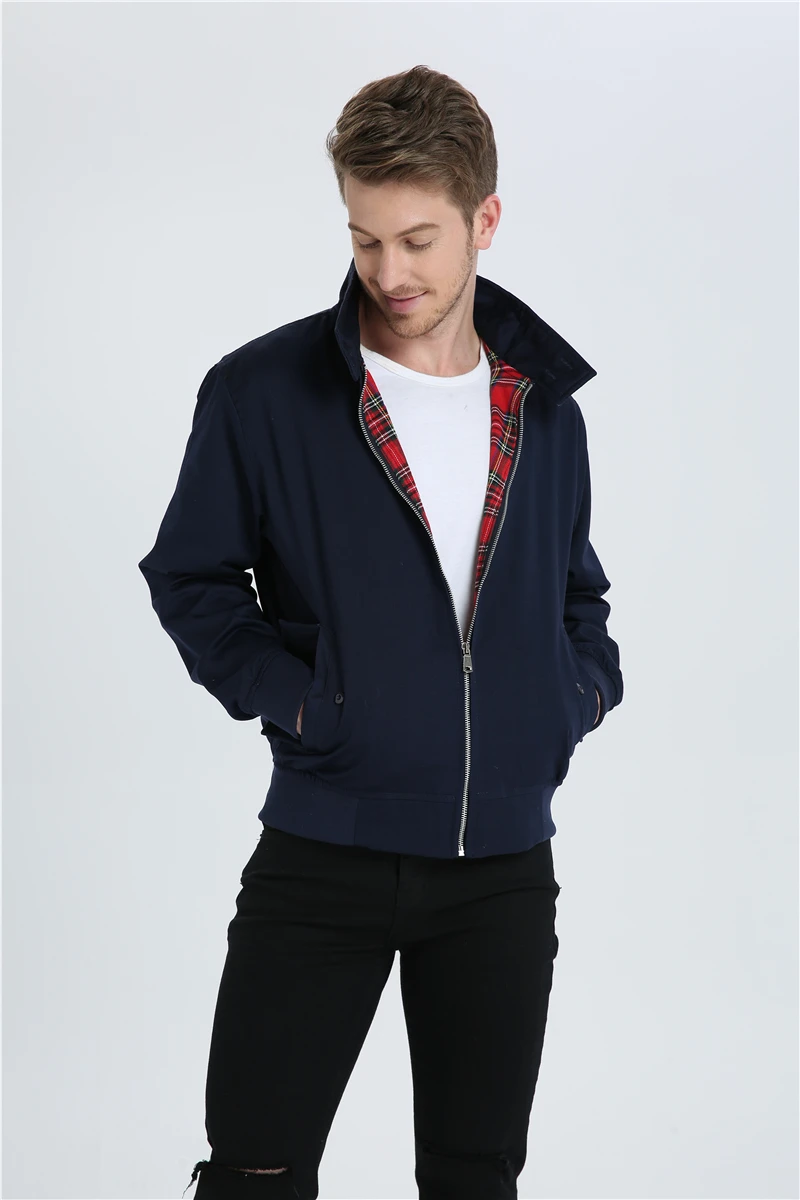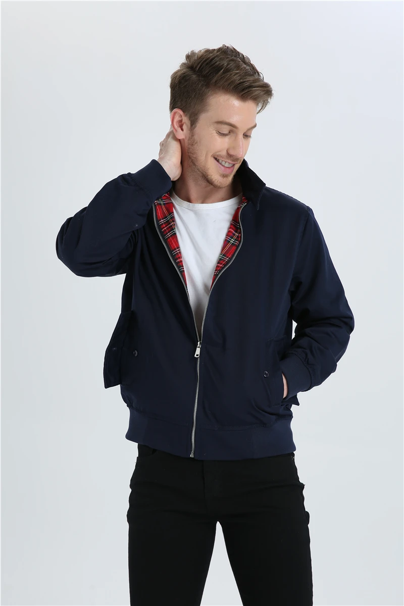 The durable fabric ensures long-lasting wear, while the classic bomber design includes practical features such as ribbed cuffs and hem, providing a comfortable fit and added warmth. The zippered closure and well-placed pockets enhance the jacket's functionality, making it a versatile addition to your wardrobe.