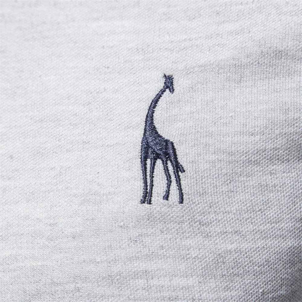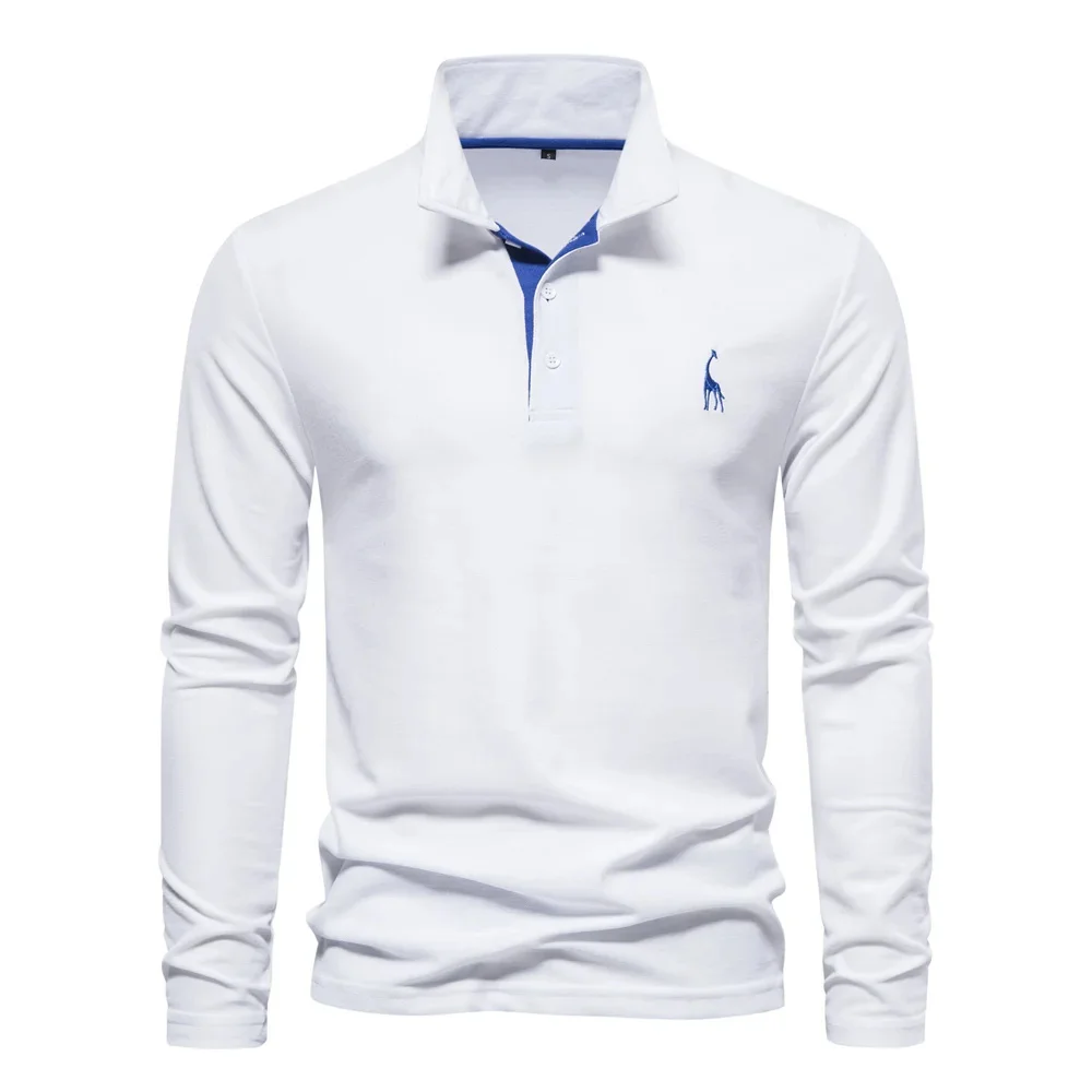 AIOPESON 2023 New Men's Deer Embroidery Polo Shirts Solid Color Long Sleeve Social Business Male