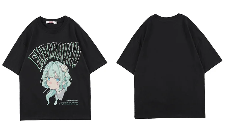 • Eye-Catching Design: Featuring a vibrant green-haired anime character, this graphic tee is a must-have for fans of anime and streetwear fashion. The detailed print brings a playful and stylish edge to your outfit.