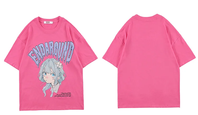 T-shirt Men Green Hair Girl Cartoon Anime Printed O-Neck Streetwear