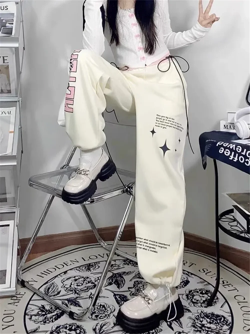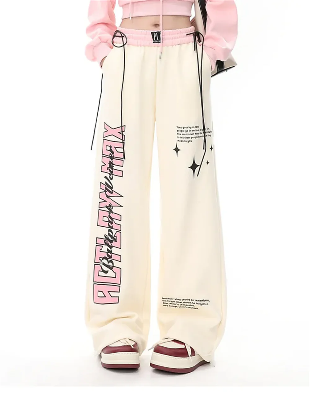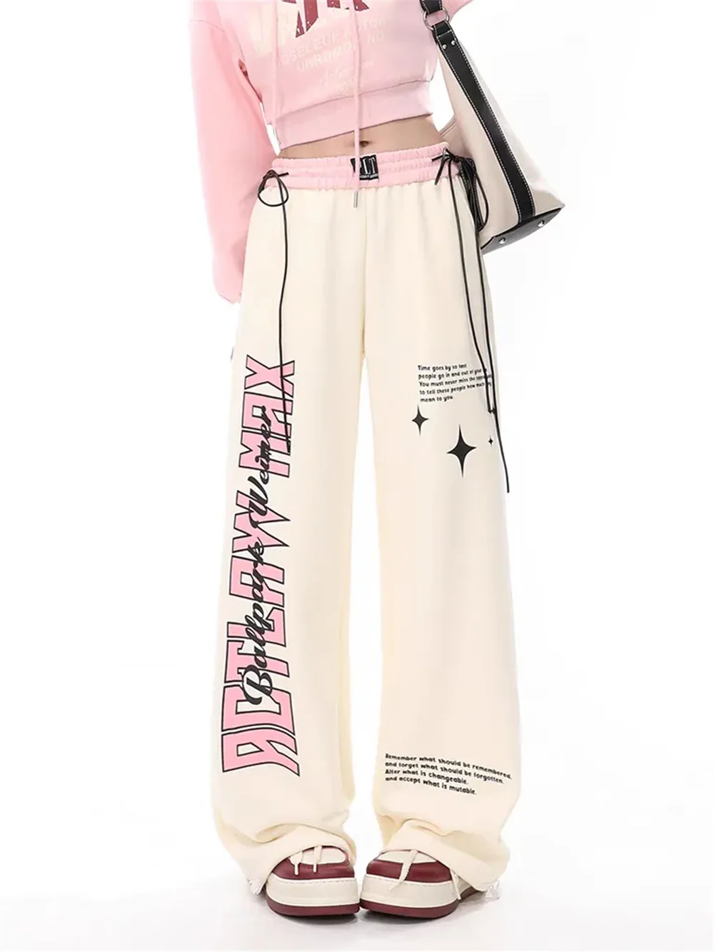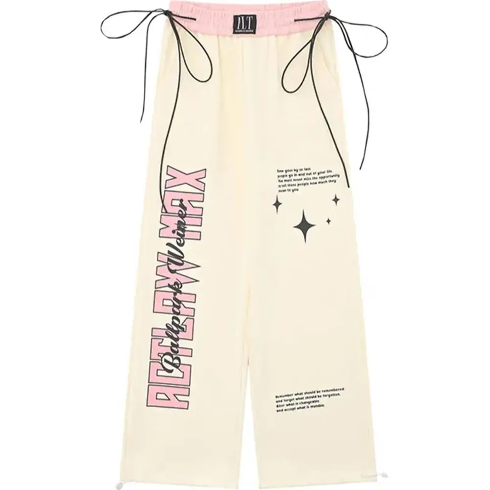 Apricot Sweatpants Women Baggy Y2k Streetwear Graphic Print Jogger Pants Vintage