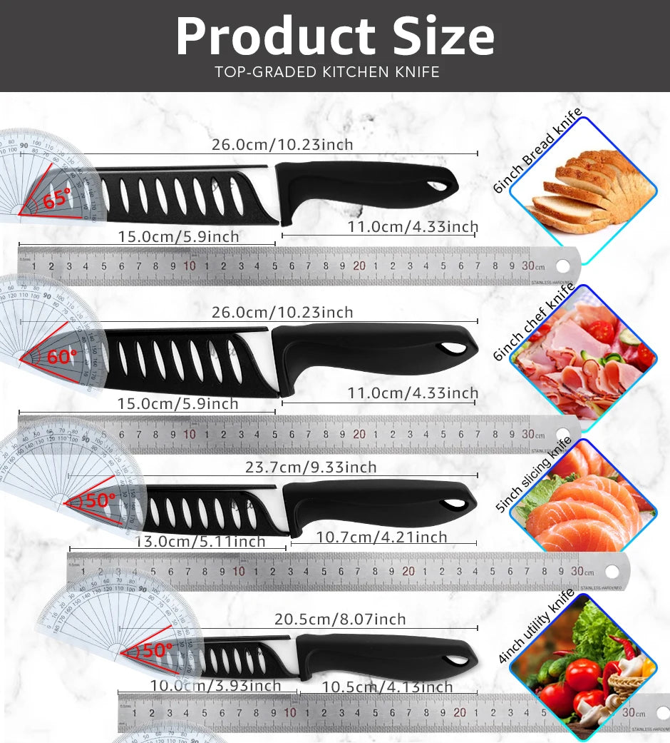 - Lightweight and Ergonomic Design: These kitchen knives are lightweight and easy to handle, designed for comfort and precision. The ergonomic handles provide a secure grip, reducing hand fatigue for any chef with knife skills.