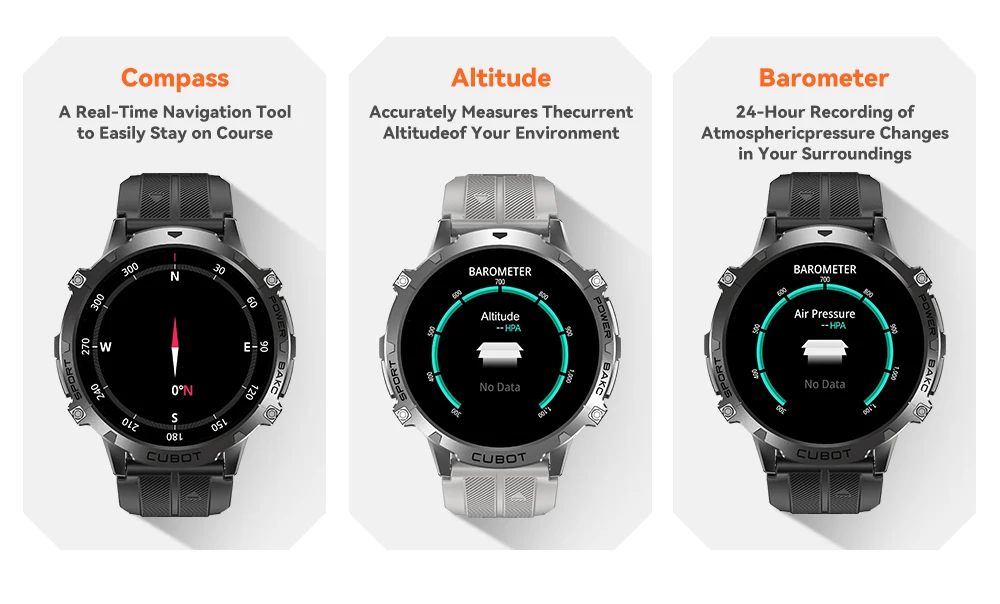 CUBOT X3 Smart Watch Zinc casing tested for 72 hours against corrosion, stain-resistant IML base