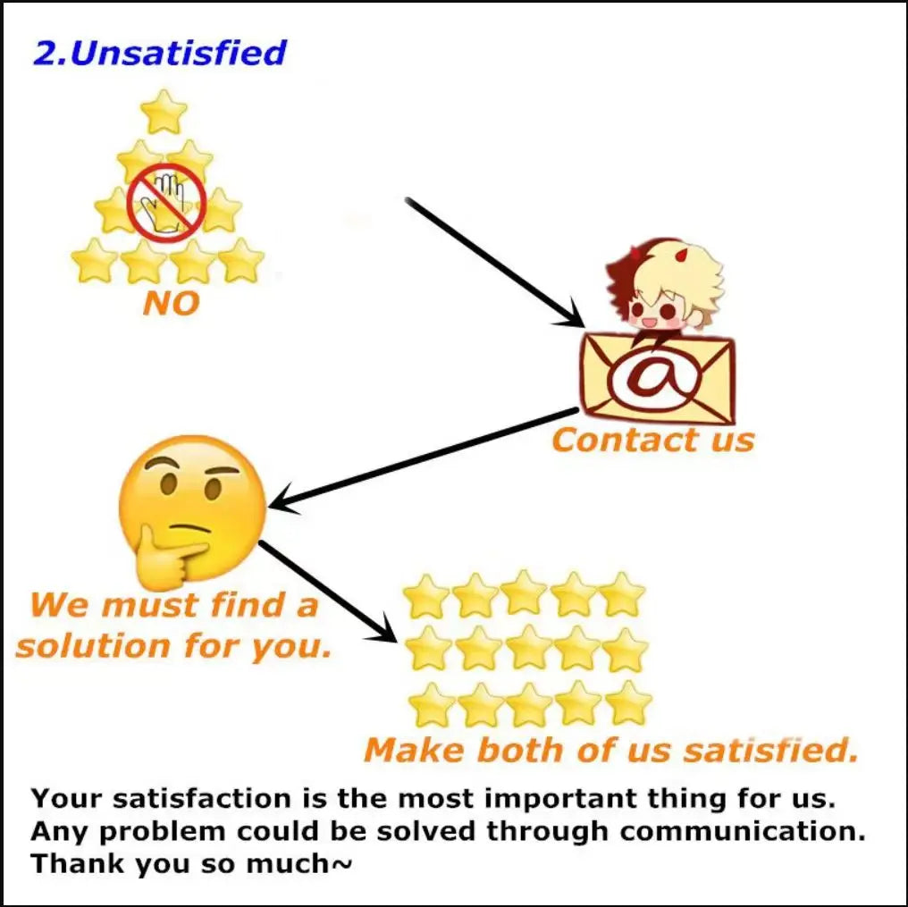 A2:If the parcel lost or defected product, pls do not give bad review or open disputes, pls contacte us in time, we will find the solution to you and make you satisfied.