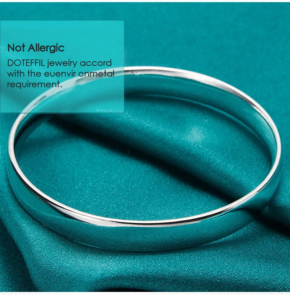 DOTEFFIL 925 Sterling Silver 10mm Smooth Solid Bracelet Bangles For Women Men Wedding Engagement Party Jewelry