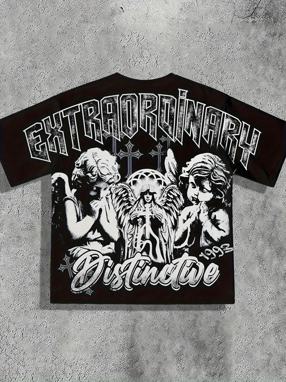 European and American men's summer retro little angel print comfortable and breathable round neck T-shirt outdoor street fashion
