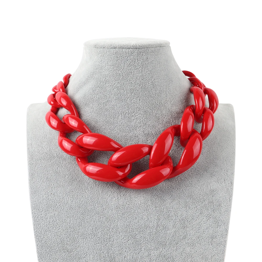 Vintage Big Acrylic Red Choker Necklace for Women: Punk Large Resin Chunky