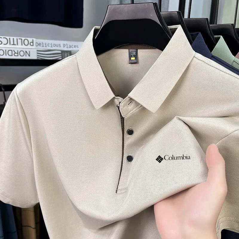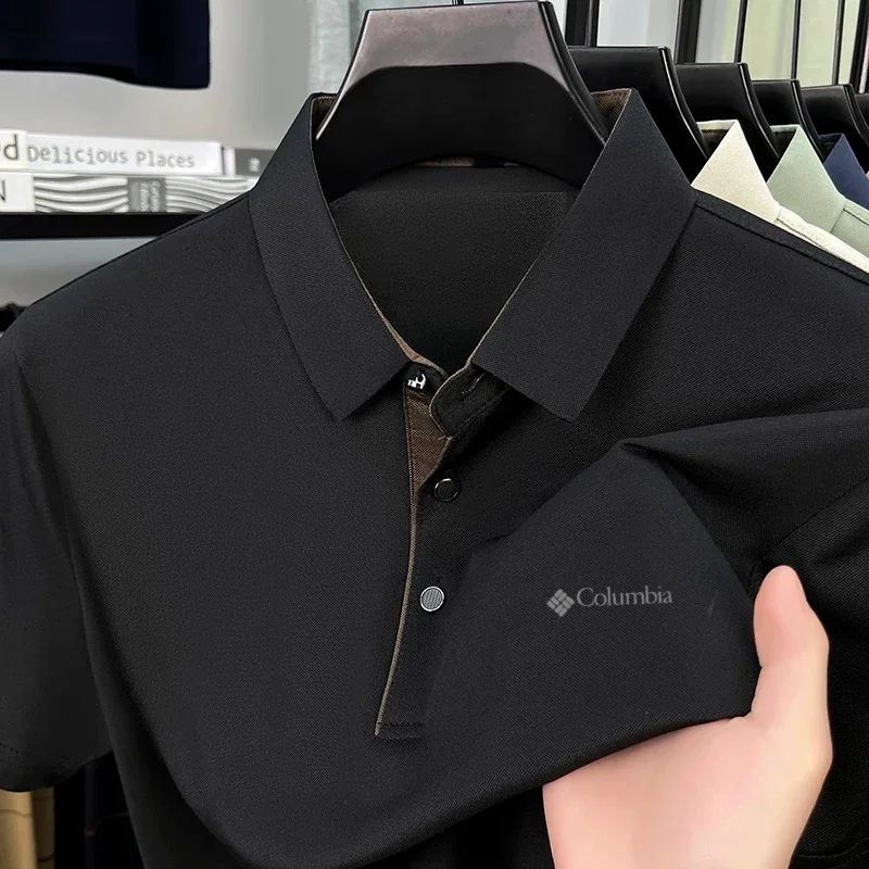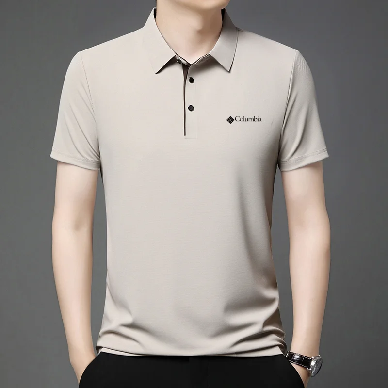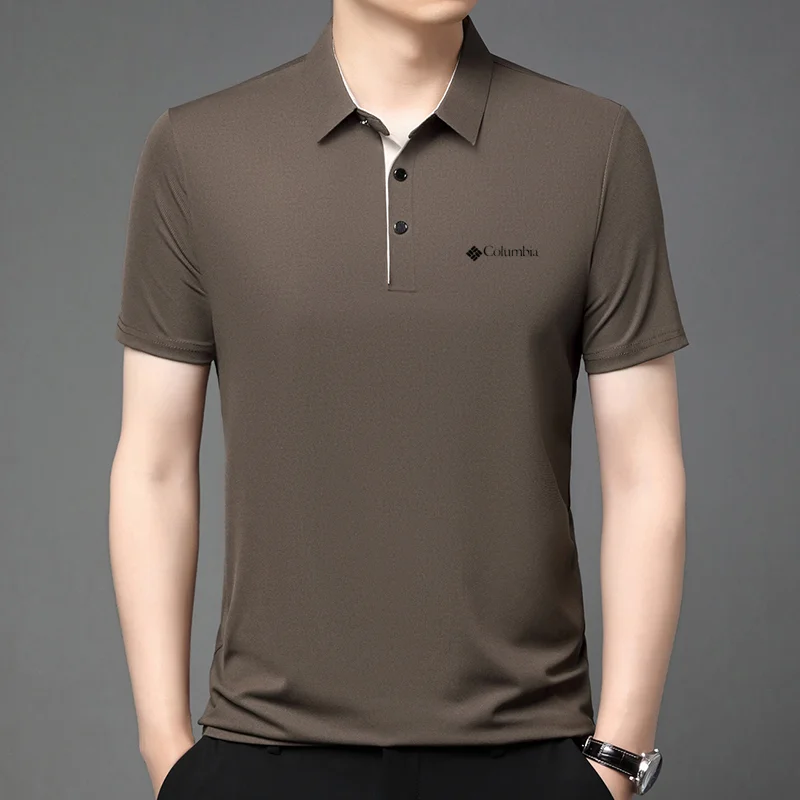High end brand men's letter printed short sleeved polo shirt cool breathable casual business 2025 summer new style lapel T-shirt