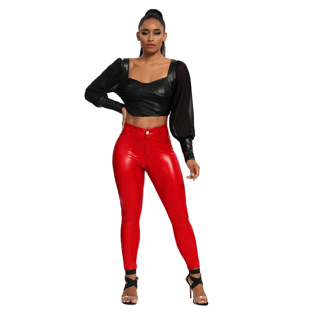 - PU Leather Material: Made from premium PU leather, these leggings are not only stylish but also durable and easy to maintain.