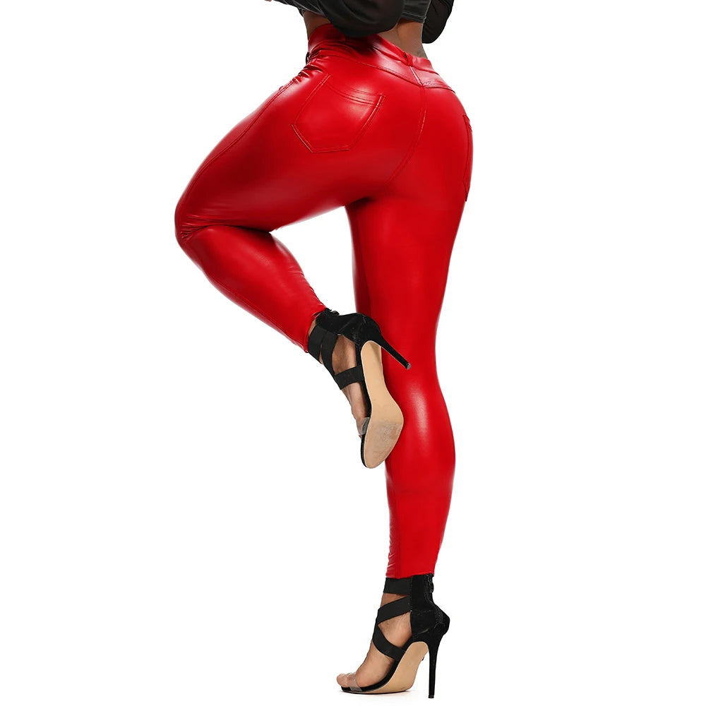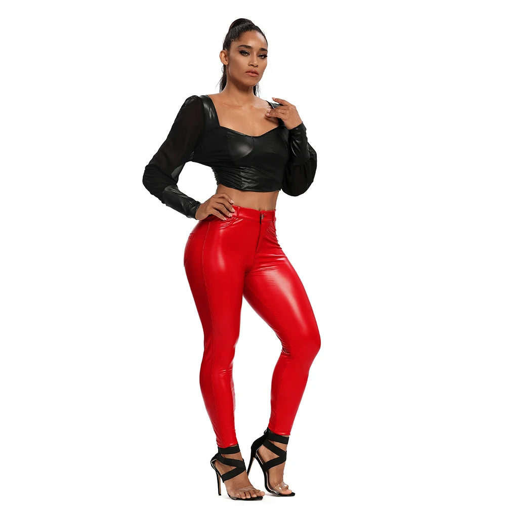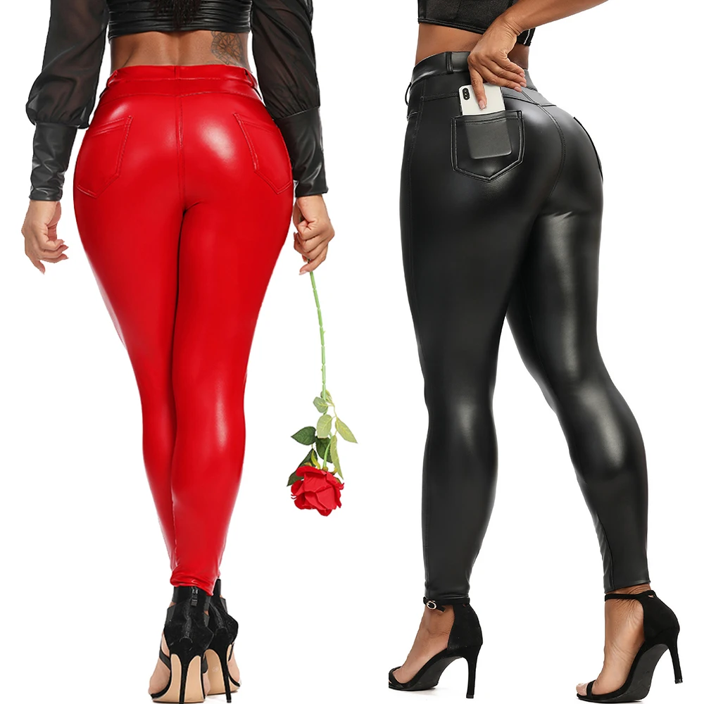 High Waist Leather Leggings for Women Black Butt Lift Femme Fitness PU Legging