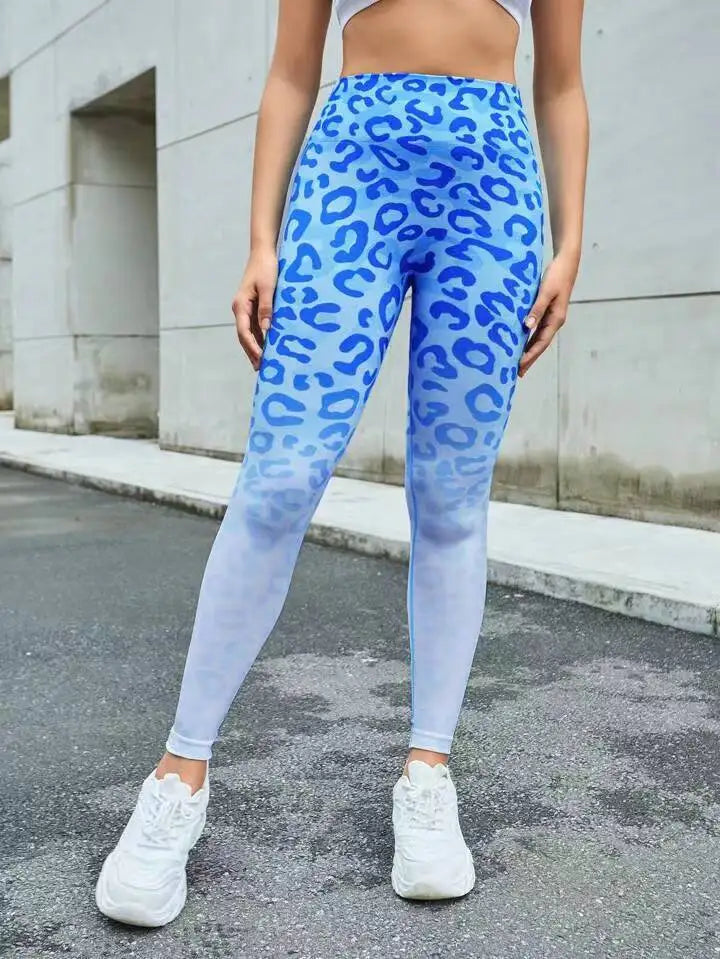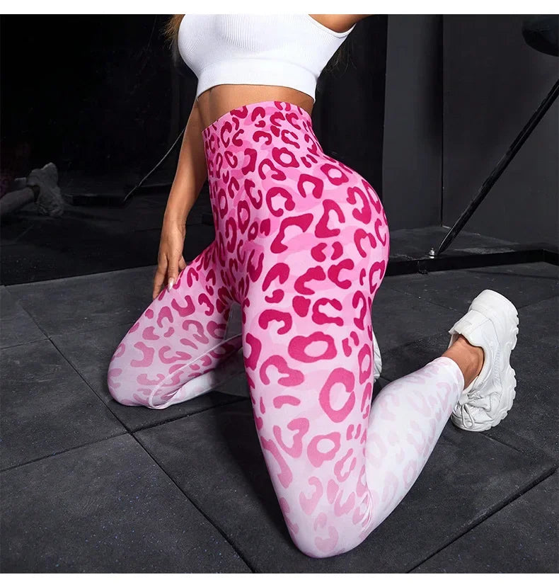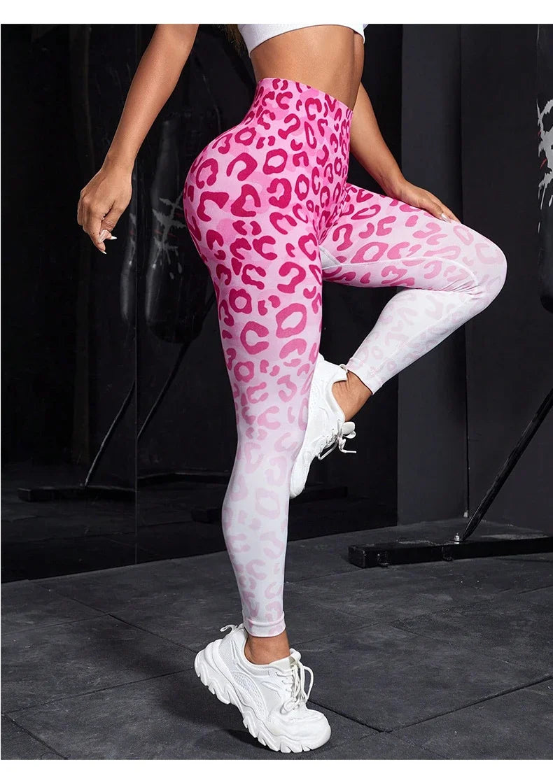 Leopard Print Seamless Leggings - Fitness Women High Waist Yoga Pants with Scrunch