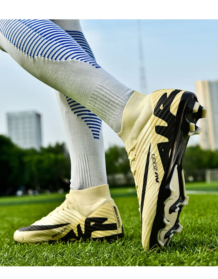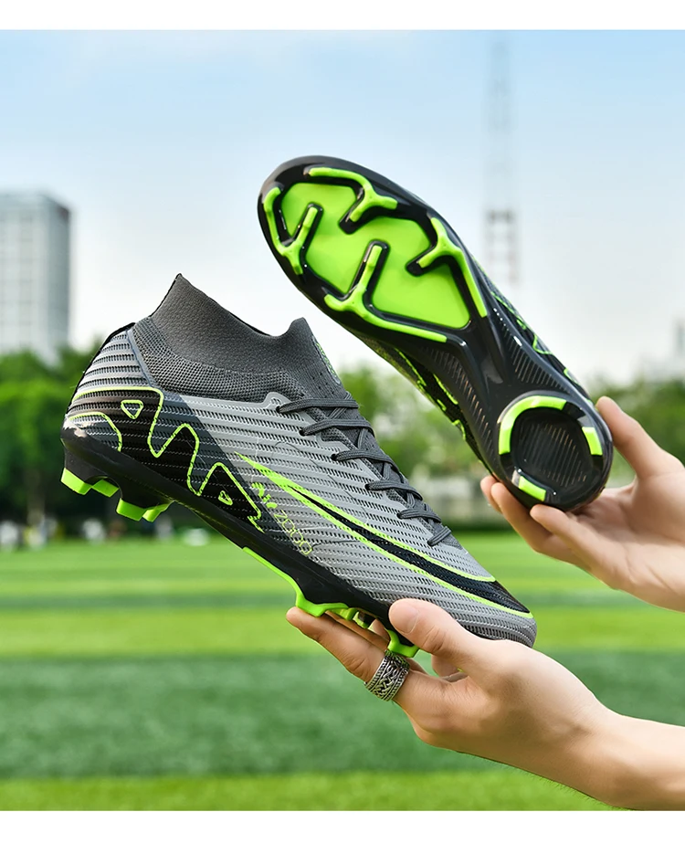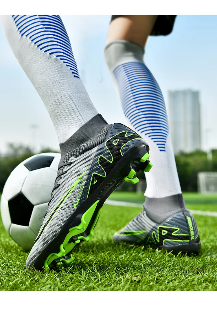 Designed for the modern athlete, our soccer cleats feature a lightweight construction that ensures agility and speed. The ankle football boots provide enhanced ankle support, crucial for quick cuts and high-speed sprints. The non-slip outsole is optimized for both grass and turf, ensuring reliable traction on any surface—just like the top Nike football cleats and Adidas soccer cleats.